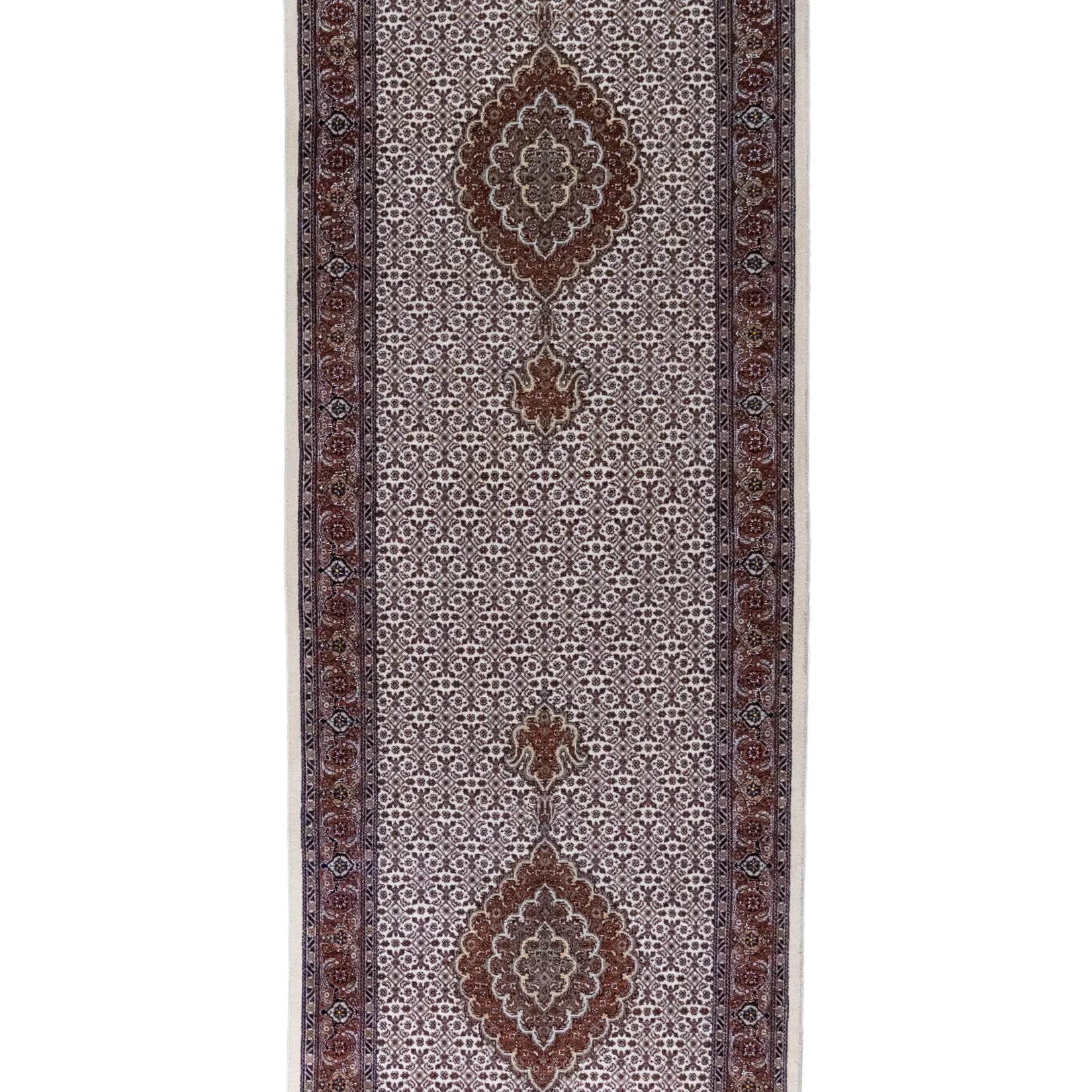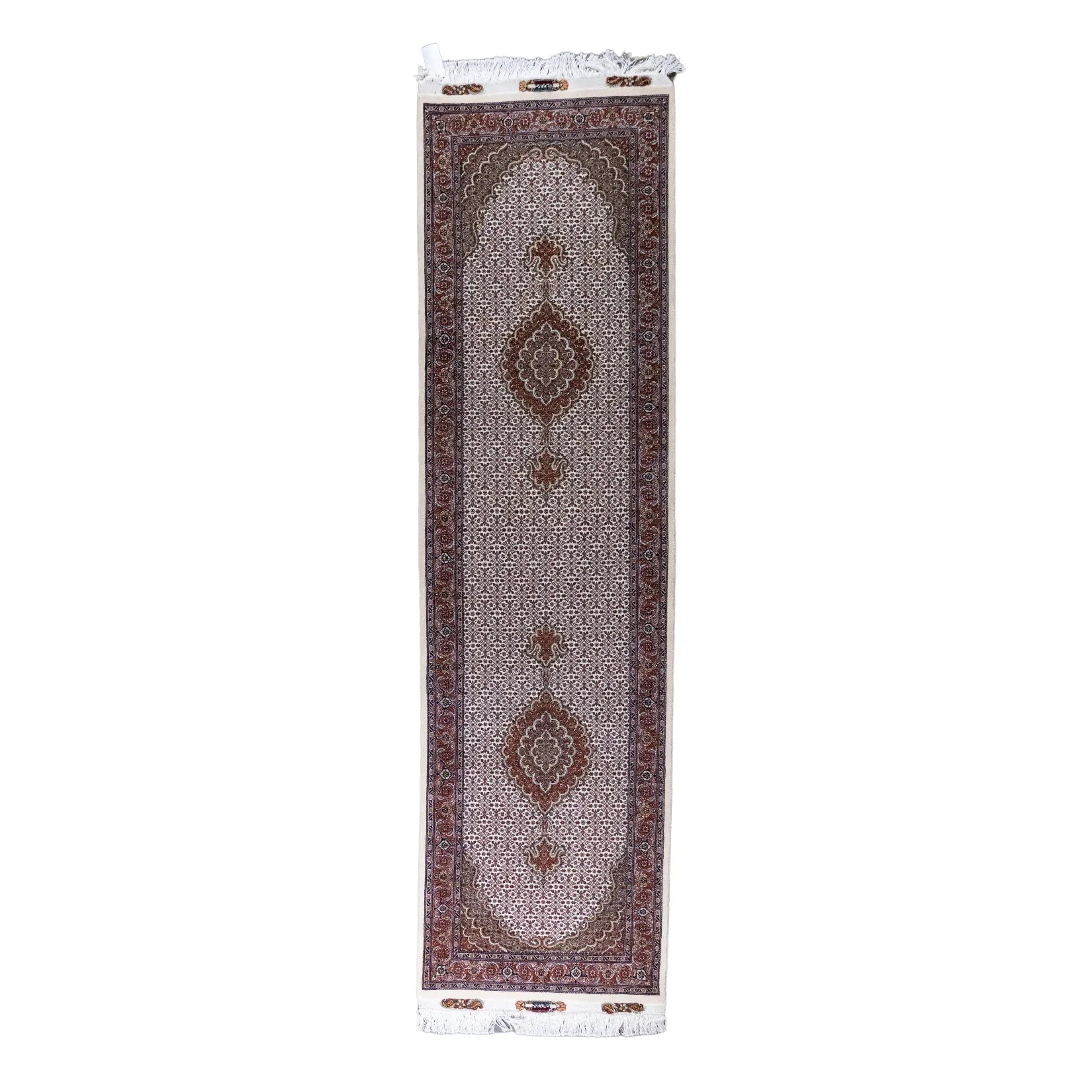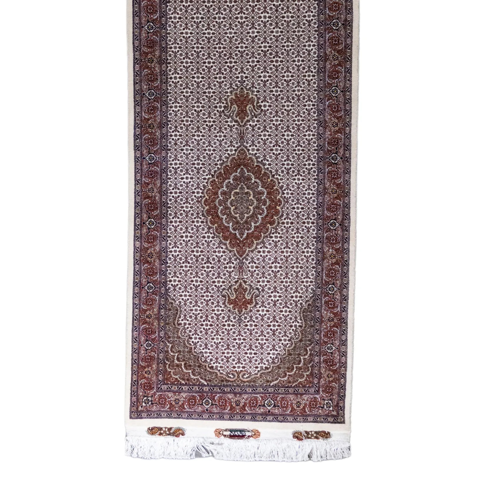 Elevate Your Space with Timeless FISH DESIGN. This elegant TABRIZ rug, featuring the distinctive fish design, brings a touch of heritage and artistry to your home. The intricate patterns on the BEIGE background symbolize movement and harmony, making it a perfect centerpiece for any room. The ROSE border adds a sophisticated contrast, framing the detailed design beautifully. Whether displayed in your living room, study, or any formal space, this rug enhances the ambiance with its rich cultural significance. Handcrafted in PERSIAN, this rug is not only a stylish addition but also a lasting investment in quality and tradition. Measuring 2' 9" x 9' 10" (imperial) or 84 x 300 (metric), it offers durability and elegance that will elevate your space for years to come.