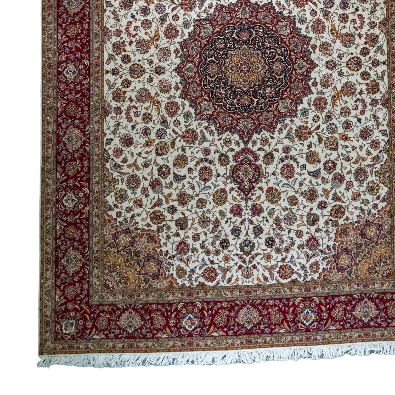 9' 9" x 13' 1" - BEIGE AND RED TABRIZ FLORAL PERSIAN RUG ( 297 x 399 CM )
