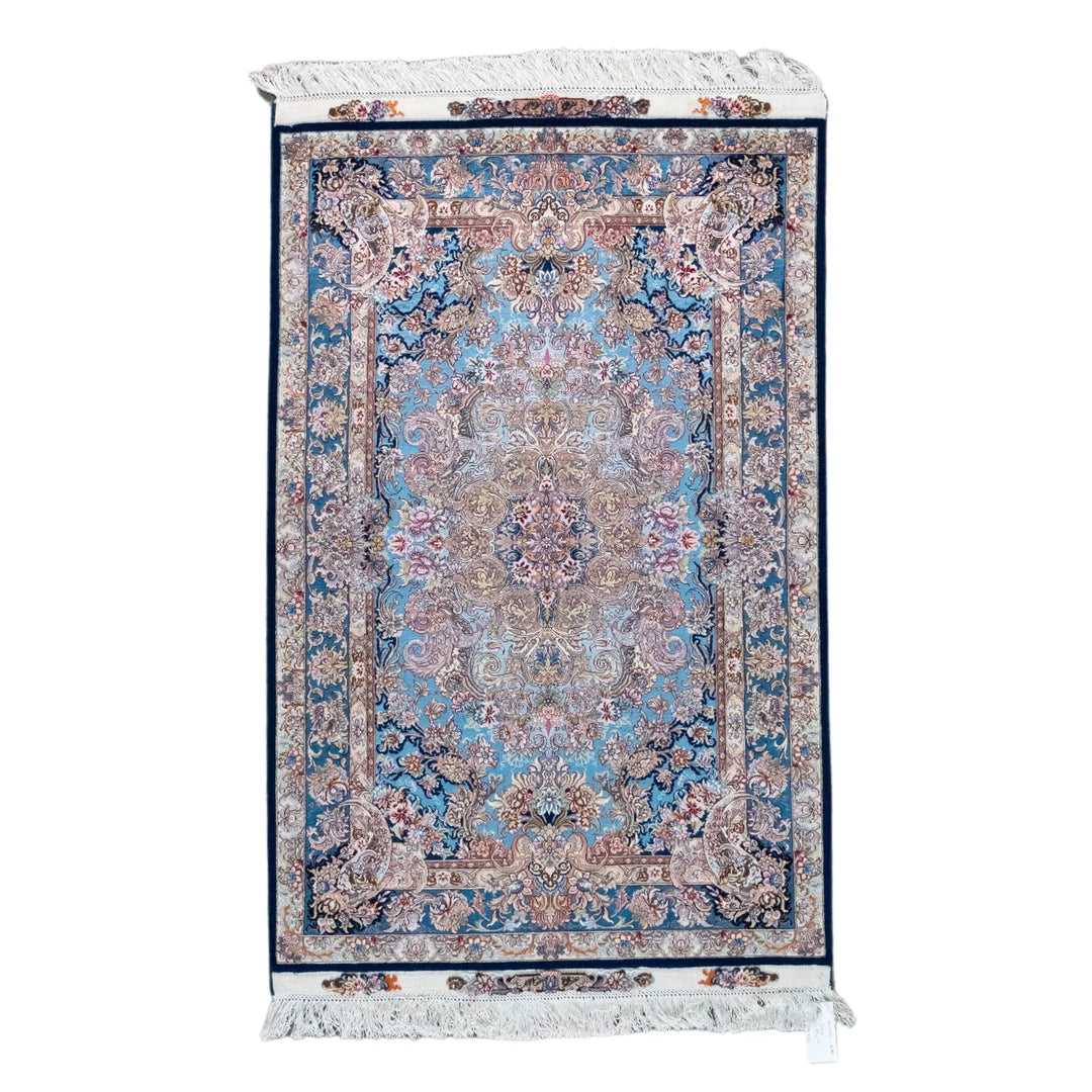 3' 3" x 5' 1" - BLUE AND BLUE TABRIZ FLORAL PERSIAN RUG ( 99 x 155 CM )