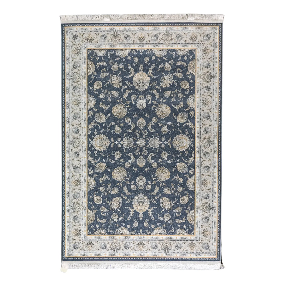 4' 11" x 7' 7" - BLUE AND BEIGE MACHINE MADE FLORAL TURKISH RUG ( 150 x 231 CM )