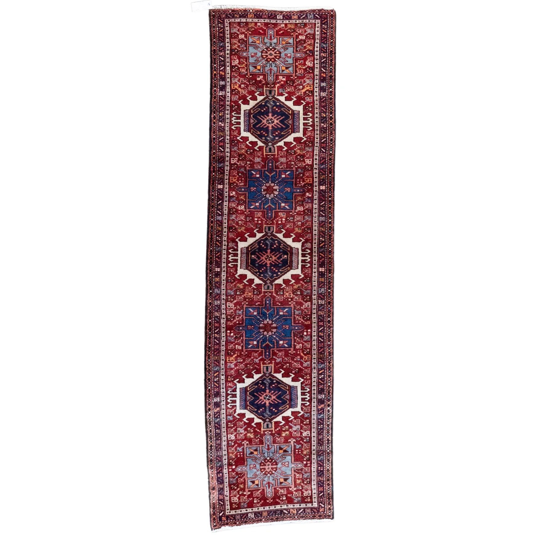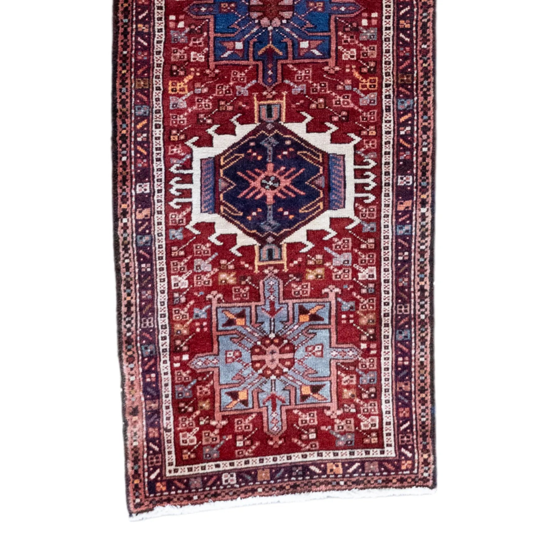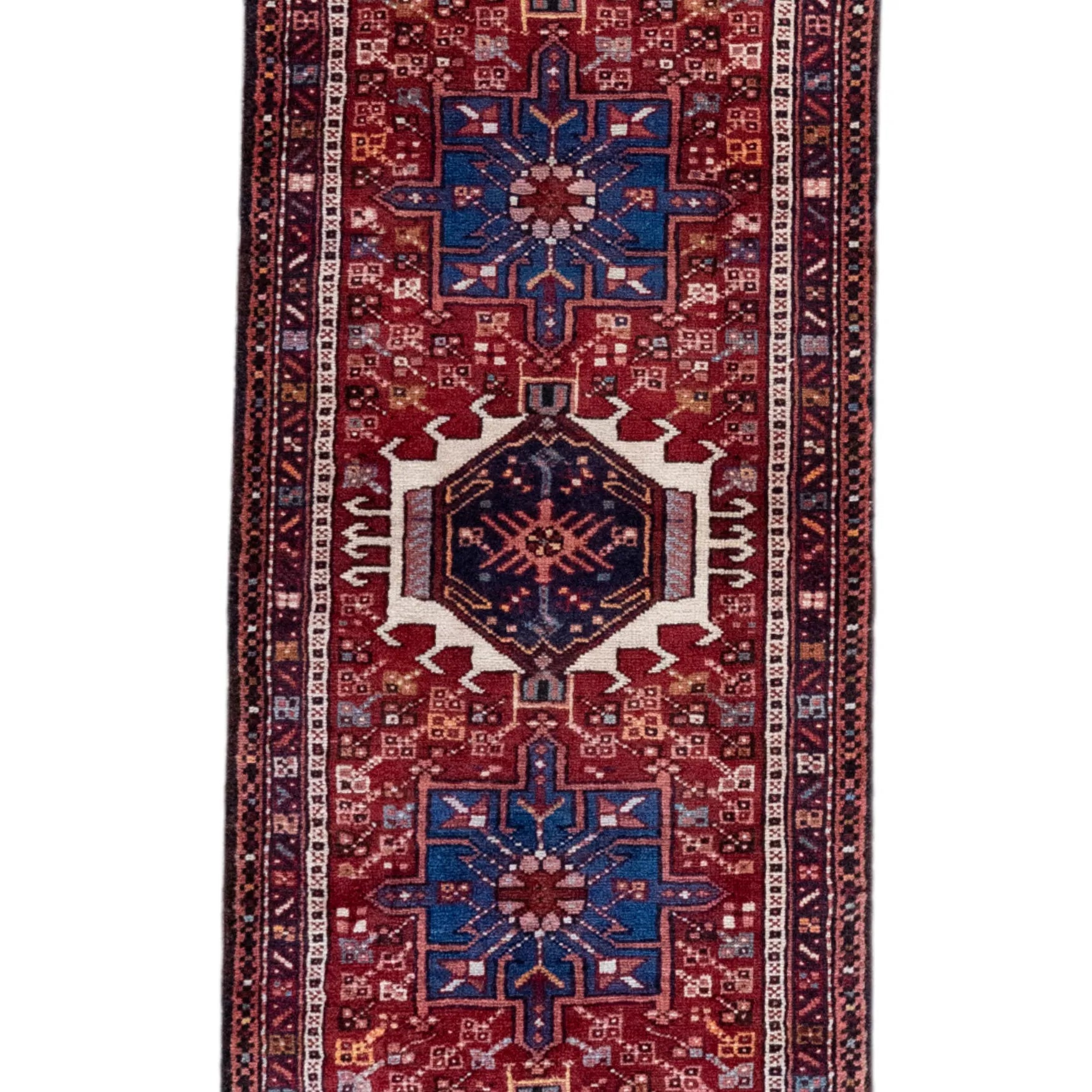 Add a Bold Touch with GEOMETRIC Style. This stunning KARAJEH rug, crafted in a striking geometric style, brings a modern and bold look to your home. The clean, sharp lines and symmetrical patterns on the BLUE base create a dynamic visual effect, making this rug a perfect statement piece. The contrasting border adds a touch of sophistication, enhancing the overall design. Whether placed in your living room, office, or any open space, the geometric pattern brings structure and energy to the decor. Sourced from PERSIAN, this handmade rug is a long-lasting investment in craftsmanship and style. Measuring 2' 3" x 8' 11" (imperial) or 68 x 272 (metric), it not only elevates your space but is built to stand the test of time.