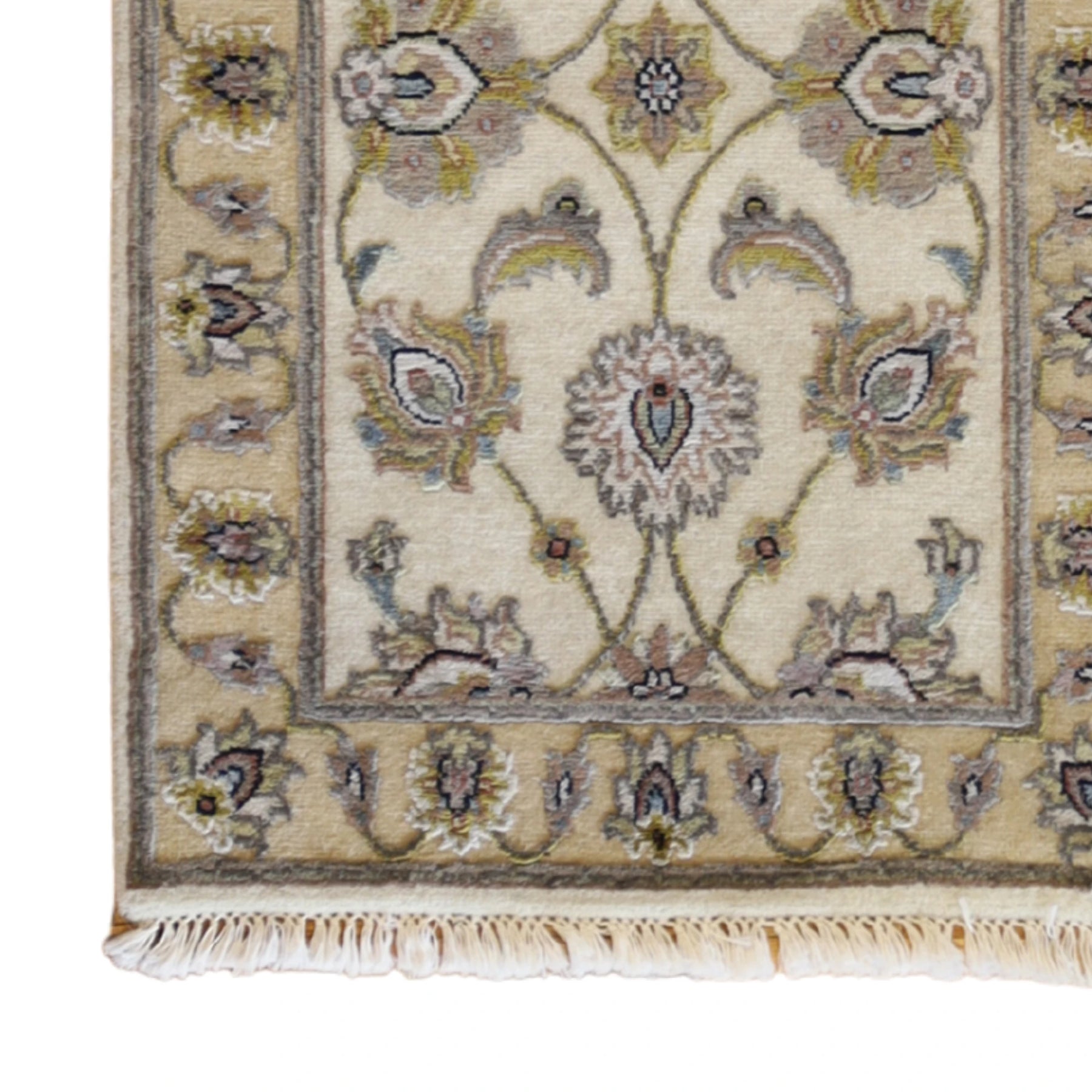 Perfectly sized for small accent areas, this handcrafted INDIAN JAIPUR rug brings timeless FLORAL style into your home. Measuring approximately 2' x 2 ft, it's ideal for use in entryways, beside the bed, in bathrooms, or under small tables.