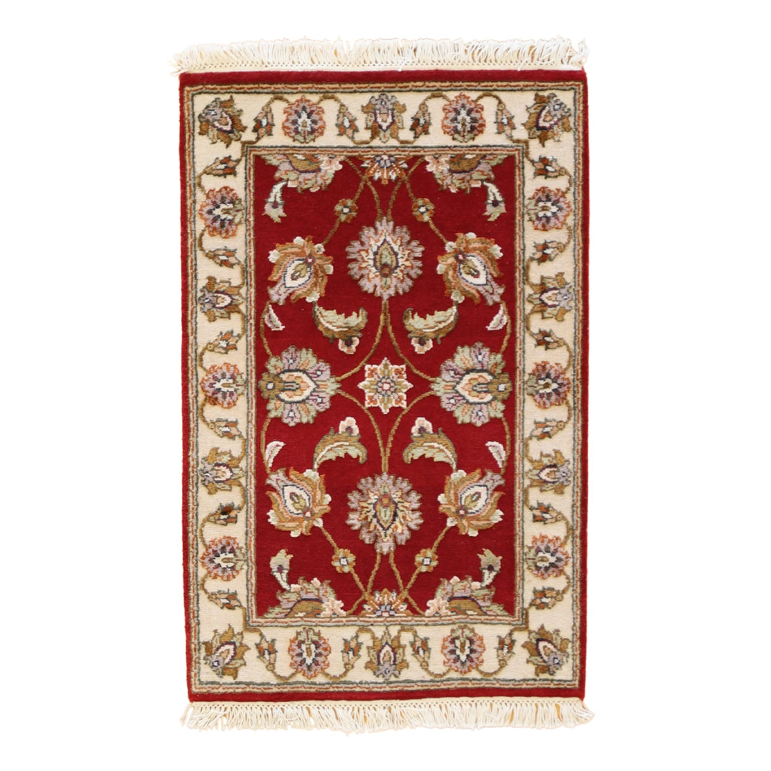 2'0" x 3'0" RED AND IVORY JAIPUR FLORAL INDIAN RUG