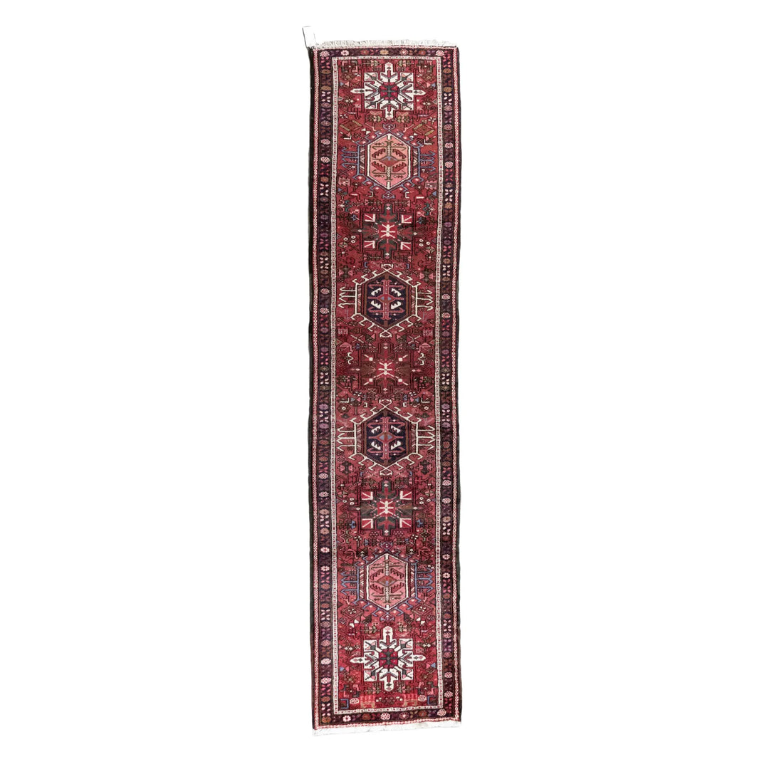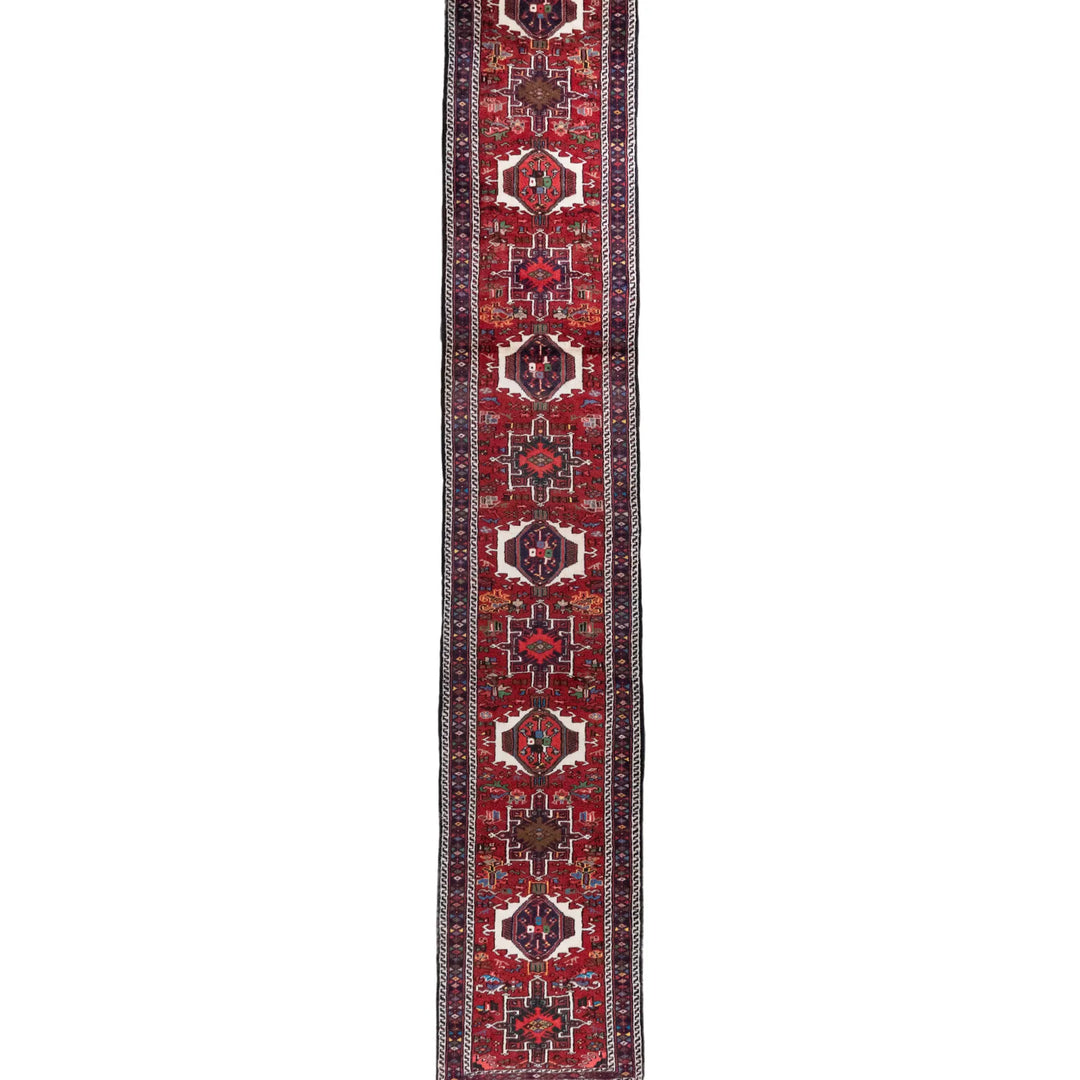 2' 9" x 12' 4" - RED AND RED KARAJEH GEOMETRIC PERSIAN RUG ( 84 x 376 CM )