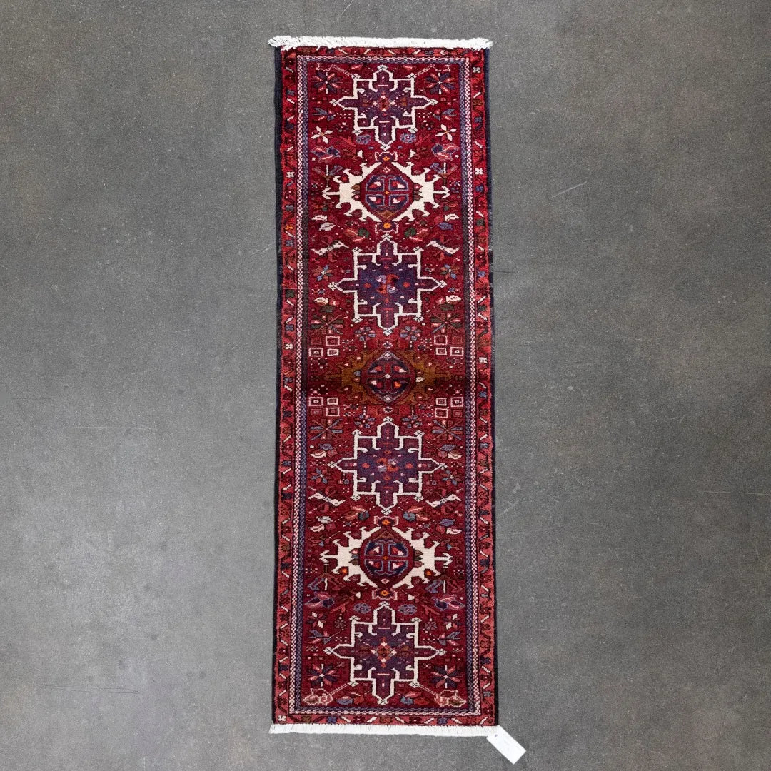 2' 8" x 8' 2" - RED AND BLUE KARAJEH GEOMETRIC PERSIAN RUG ( 81 x 249 CM )