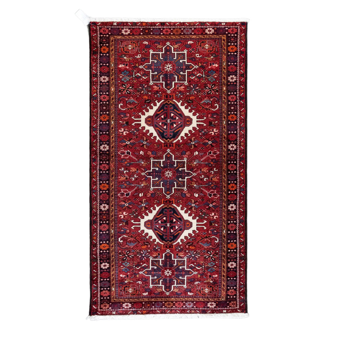 2' 7" x 8' 7" - RED AND NAVY KARAJEH GEOMETRIC PERSIAN RUG ( 80 x 260 CM )