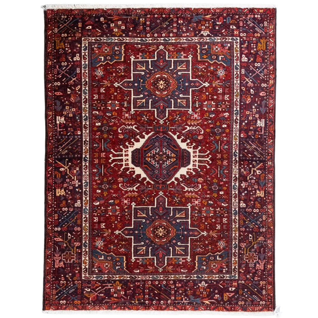 4' 11" x 6' 5" - RED AND NAVY KARAJEH GEOMETRIC PERSIAN RUG ( 150 x 195 CM )