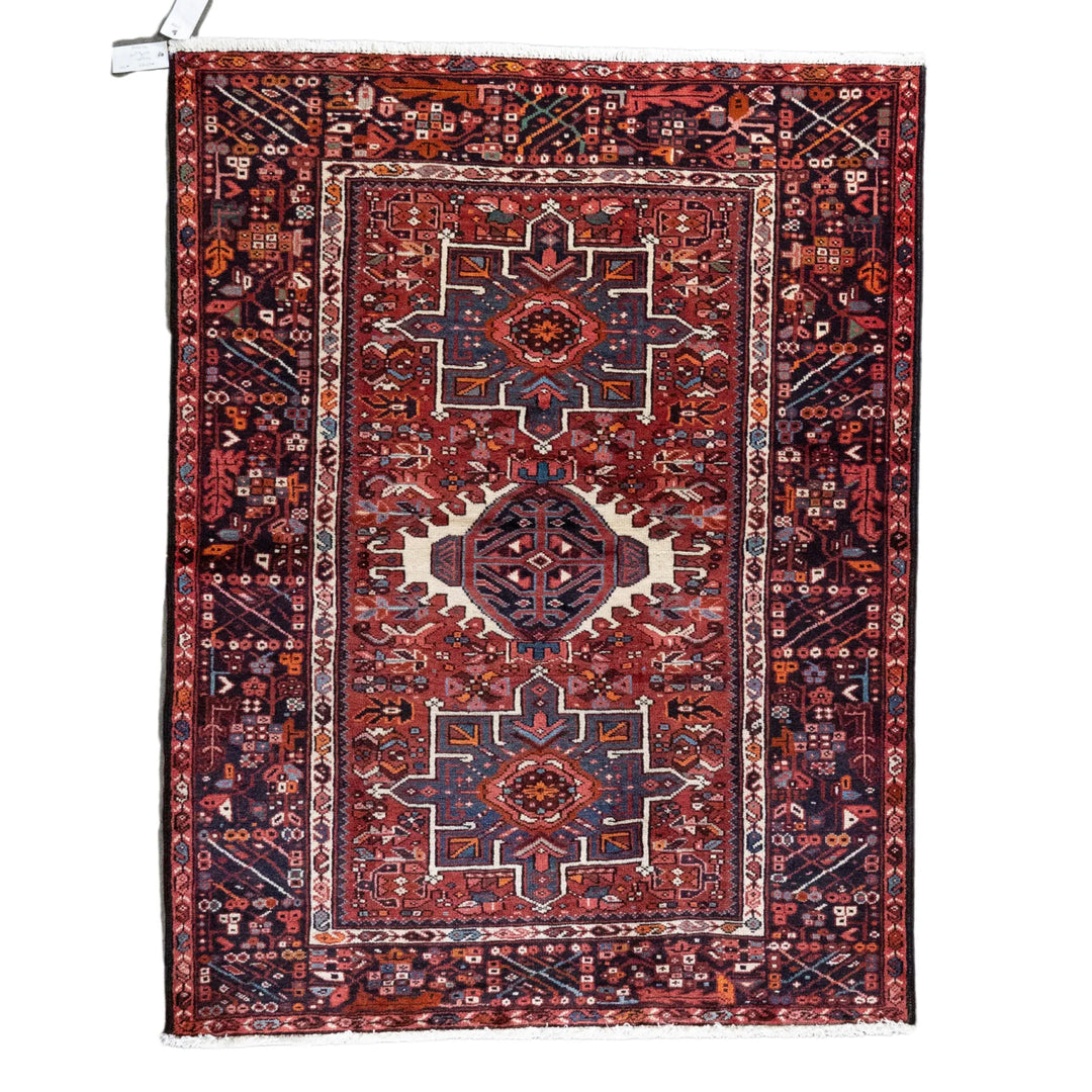 4' 10" x 6' 3" - NAVY AND RED KARAJEH GEOMETRIC PERSIAN RUG ( 147 x 190 CM )
