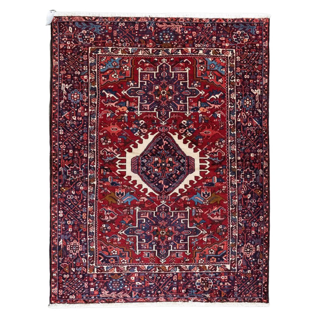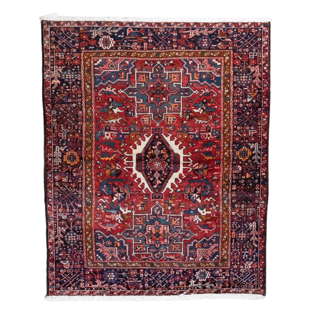 5' 0" x 6' 7" - RED AND NAVY KARAJEH GEOMETRIC PERSIAN RUG ( 152 x 200 CM )