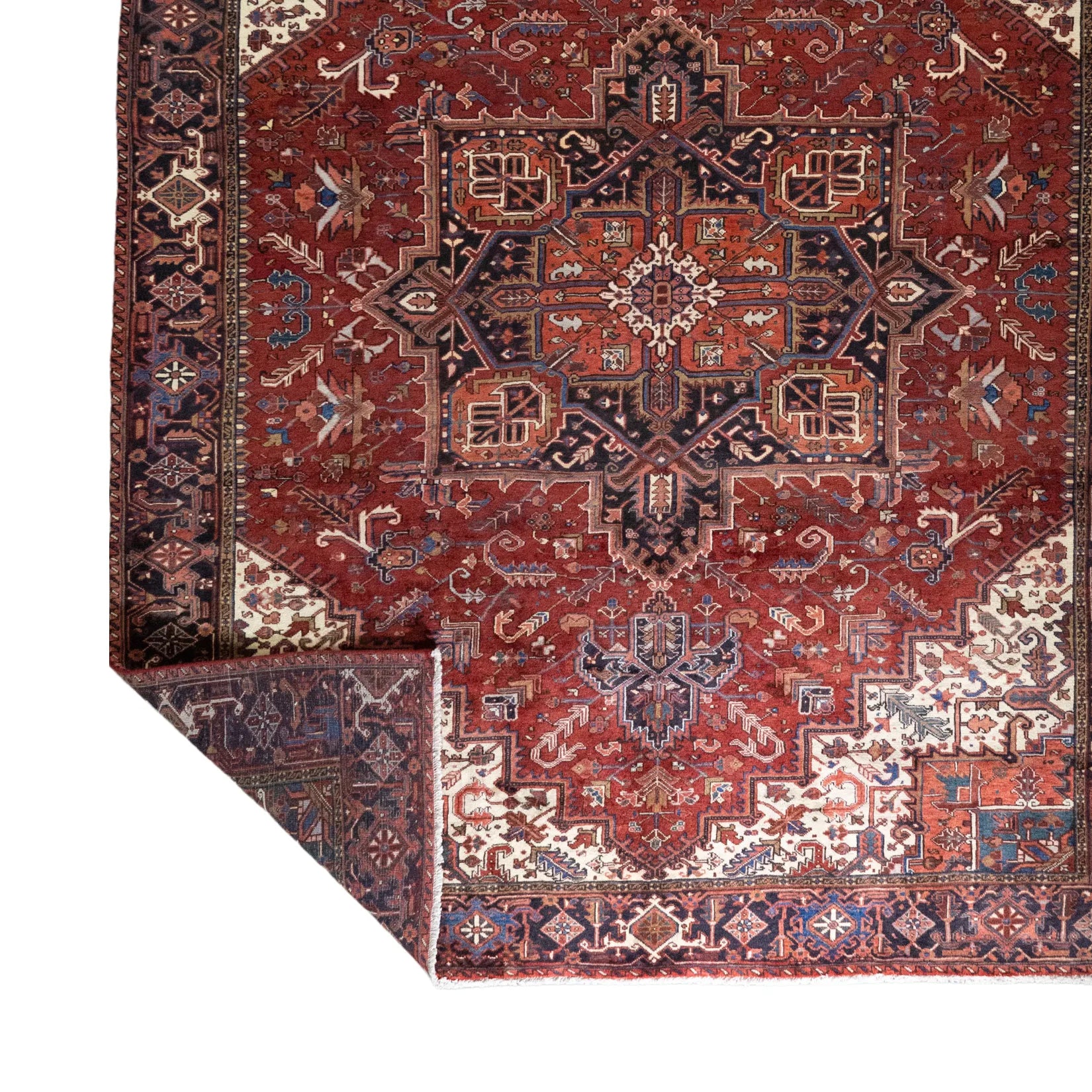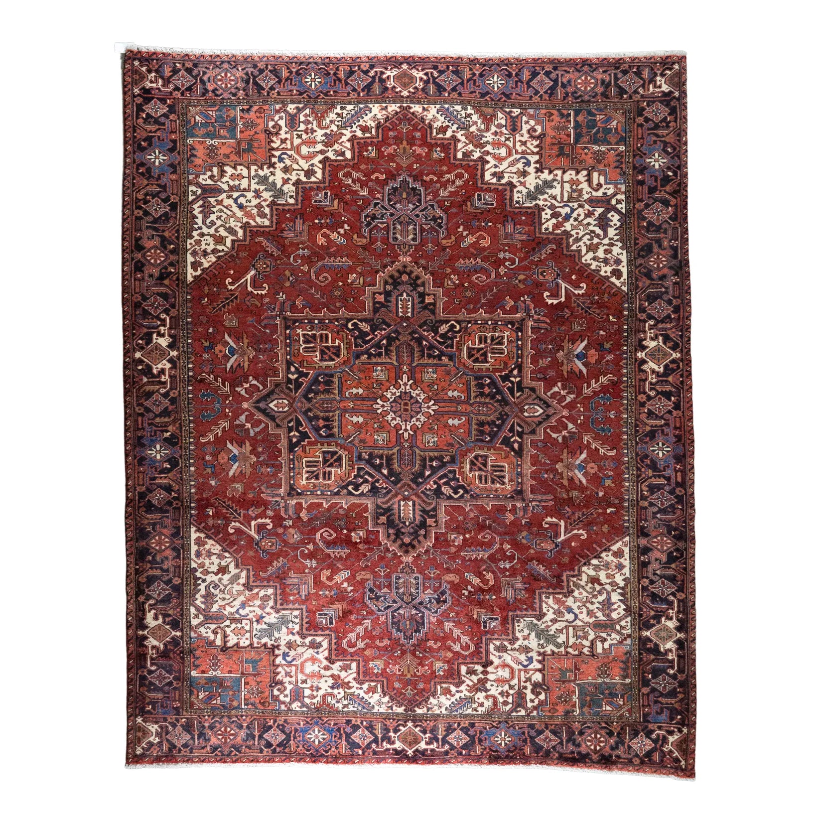 Add a Bold Touch with GEOMETRIC Style. This stunning HERIZ rug, crafted in a striking geometric style, brings a modern and bold look to your home. The clean, sharp lines and symmetrical patterns on the RED base create a dynamic visual effect, making this rug a perfect statement piece. The contrasting NAVY border adds a touch of sophistication, enhancing the overall design. Whether placed in your living room, office, or any open space, the geometric pattern brings structure and energy to the decor. Sourced from PERSIAN, this handmade rug is a long-lasting investment in craftsmanship and style. Measuring 10' 2" x 12' 8" (imperial) or 310 x 386 (metric), it not only elevates your space but is built to stand the test of time.