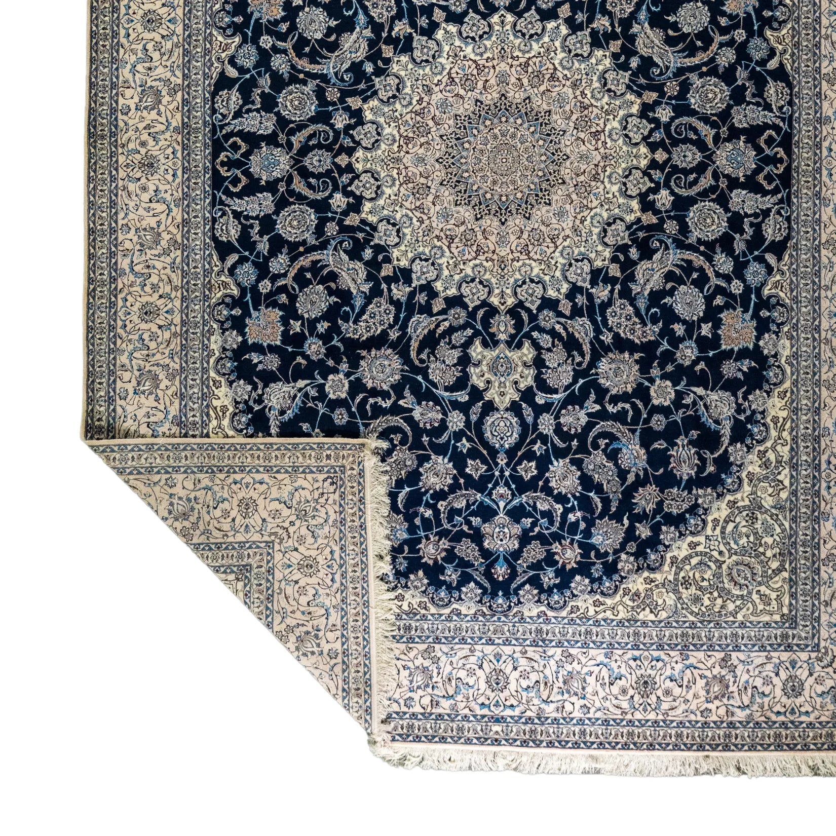 10' 2" x 14' 0" - NAVY AND BEIGE NAEIN FLORAL PERSIAN RUG ( 310 x 427 CM )