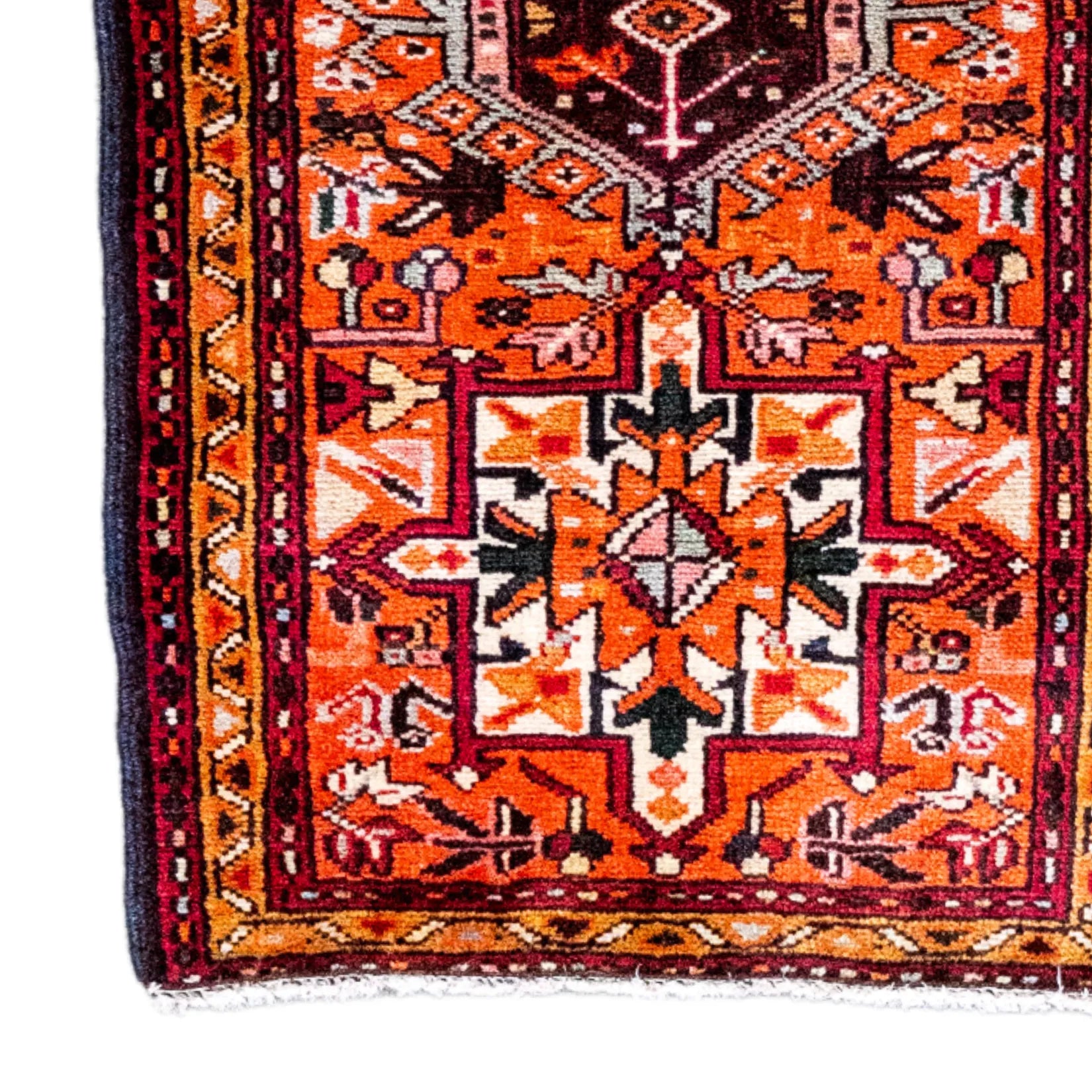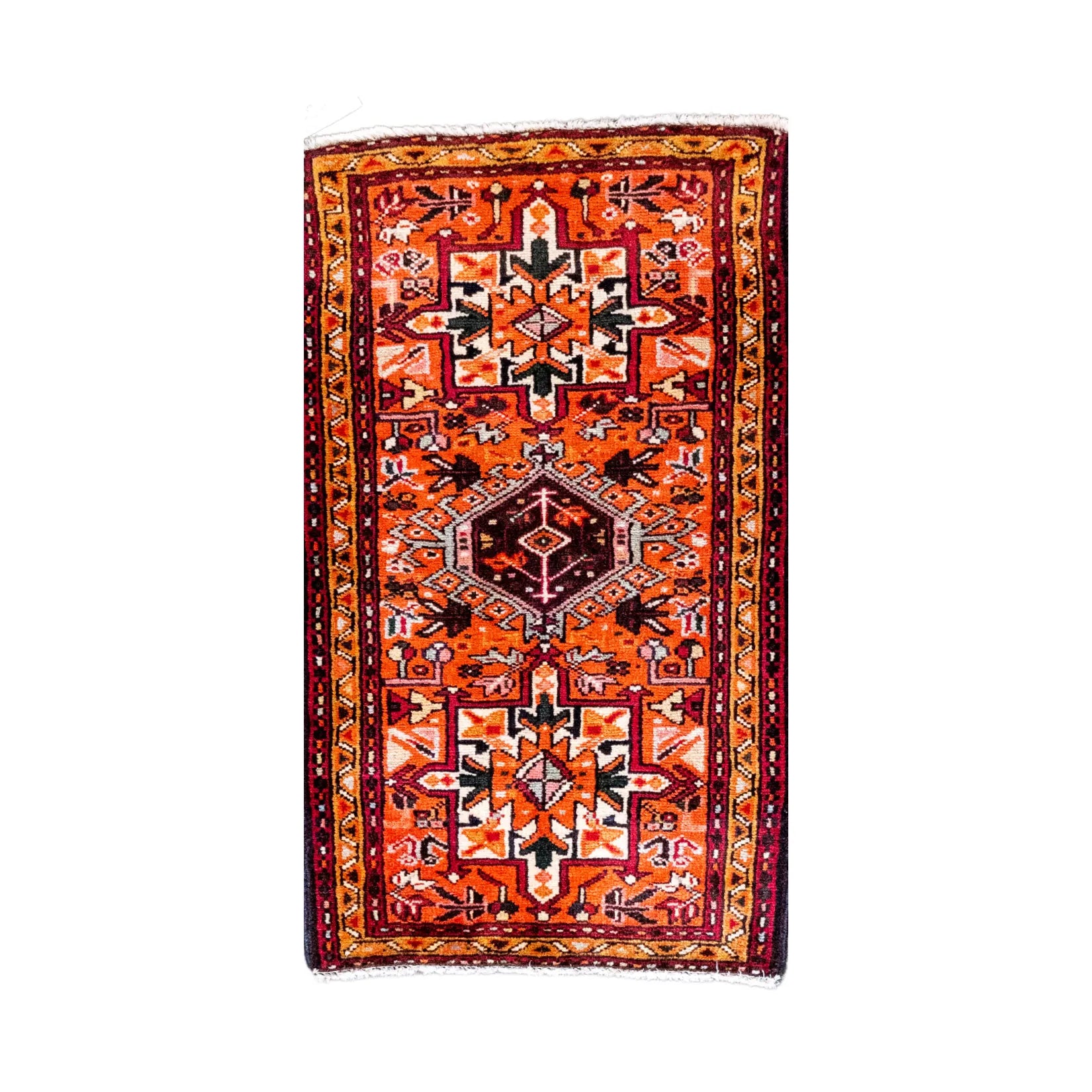 Add a Bold Touch with GEOMETRIC Style. This stunning KARAJEH rug, crafted in a striking geometric style, brings a modern and bold look to your home. The clean, sharp lines and symmetrical patterns on the RUST base create a dynamic visual effect, making this rug a perfect statement piece. The contrasting BLUE border adds a touch of sophistication, enhancing the overall design. Whether placed in your living room, office, or any open space, the geometric pattern brings structure and energy to the decor. Sourced from PERSIAN, this handmade rug is a long-lasting investment in craftsmanship and style. Measuring 2' 0" x 3' 2" (imperial) or 61 x 96 (metric), it not only elevates your space but is built to stand the test of time.