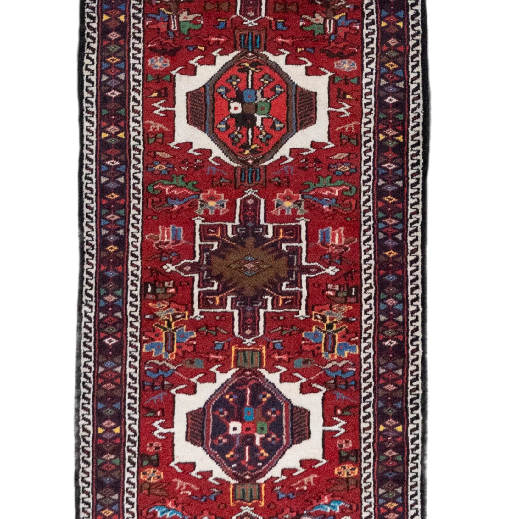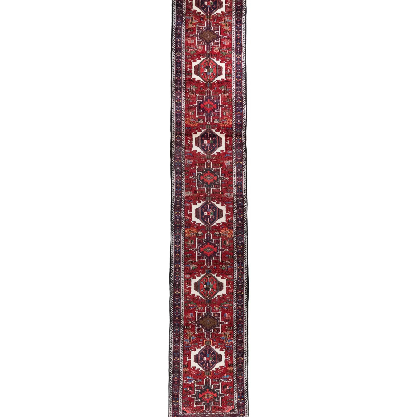 Add a Bold Touch with GEOMETRIC Style. This stunning KARAJEH rug, crafted in a striking geometric style, brings a modern and bold look to your home. The clean, sharp lines and symmetrical patterns on the RED base create a dynamic visual effect, making this rug a perfect statement piece. The contrasting RED border adds a touch of sophistication, enhancing the overall design. Whether placed in your living room, office, or any open space, the geometric pattern brings structure and energy to the decor. Sourced from PERSIAN, this handmade rug is a long-lasting investment in craftsmanship and style. Measuring 2' 7" x 16' 0" (imperial) or 79 x 487 (metric), it not only elevates your space but is built to stand the test of time.