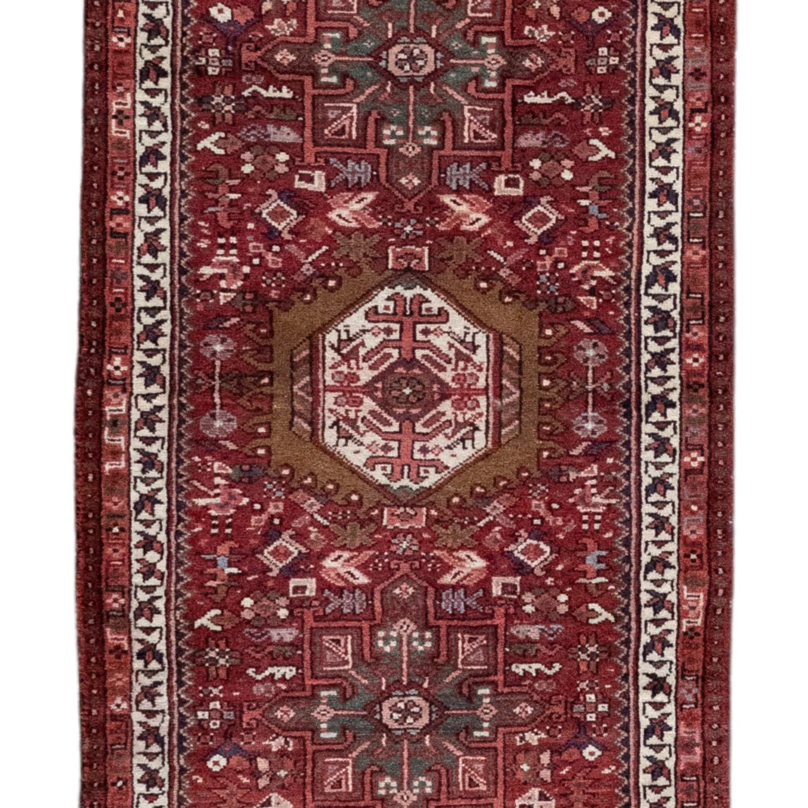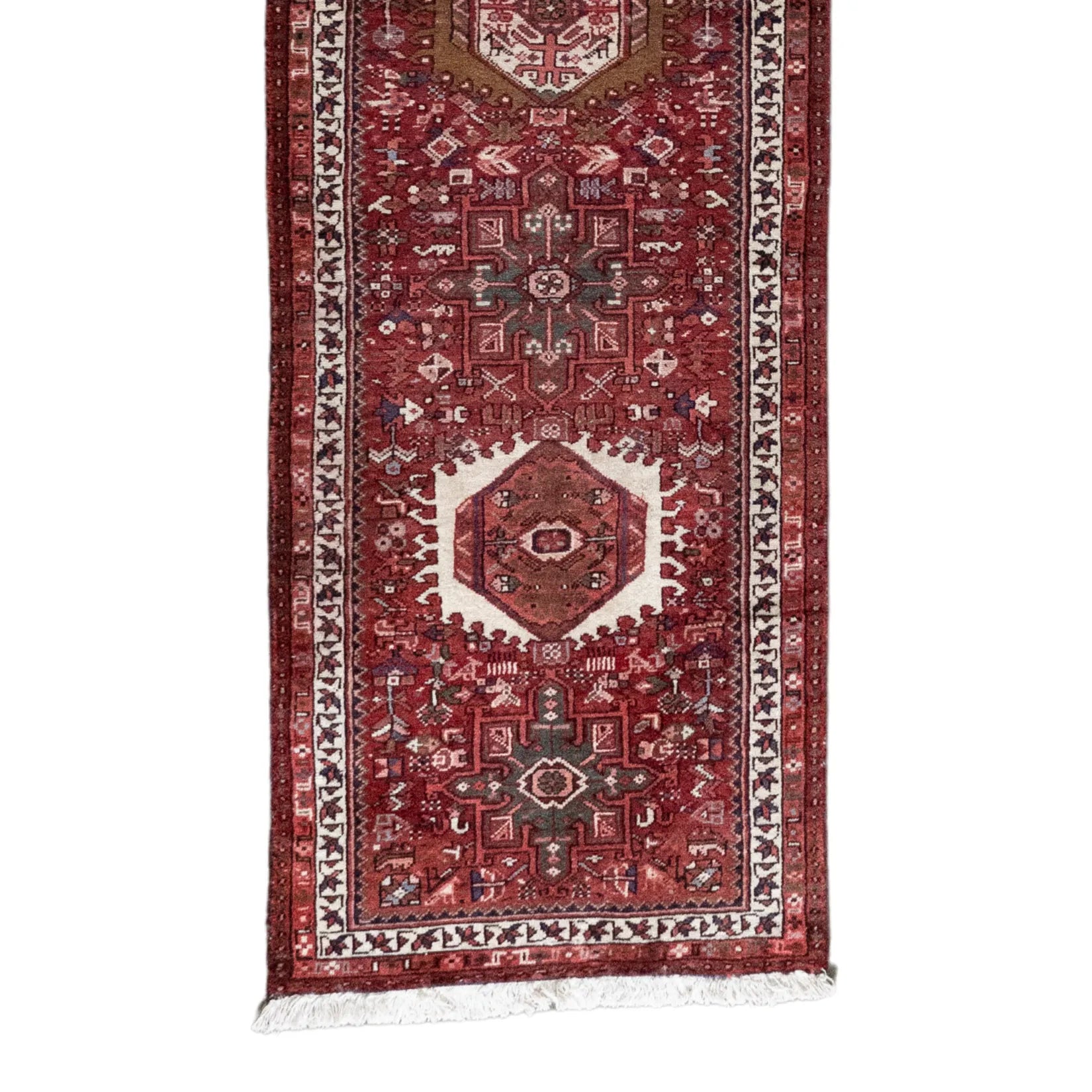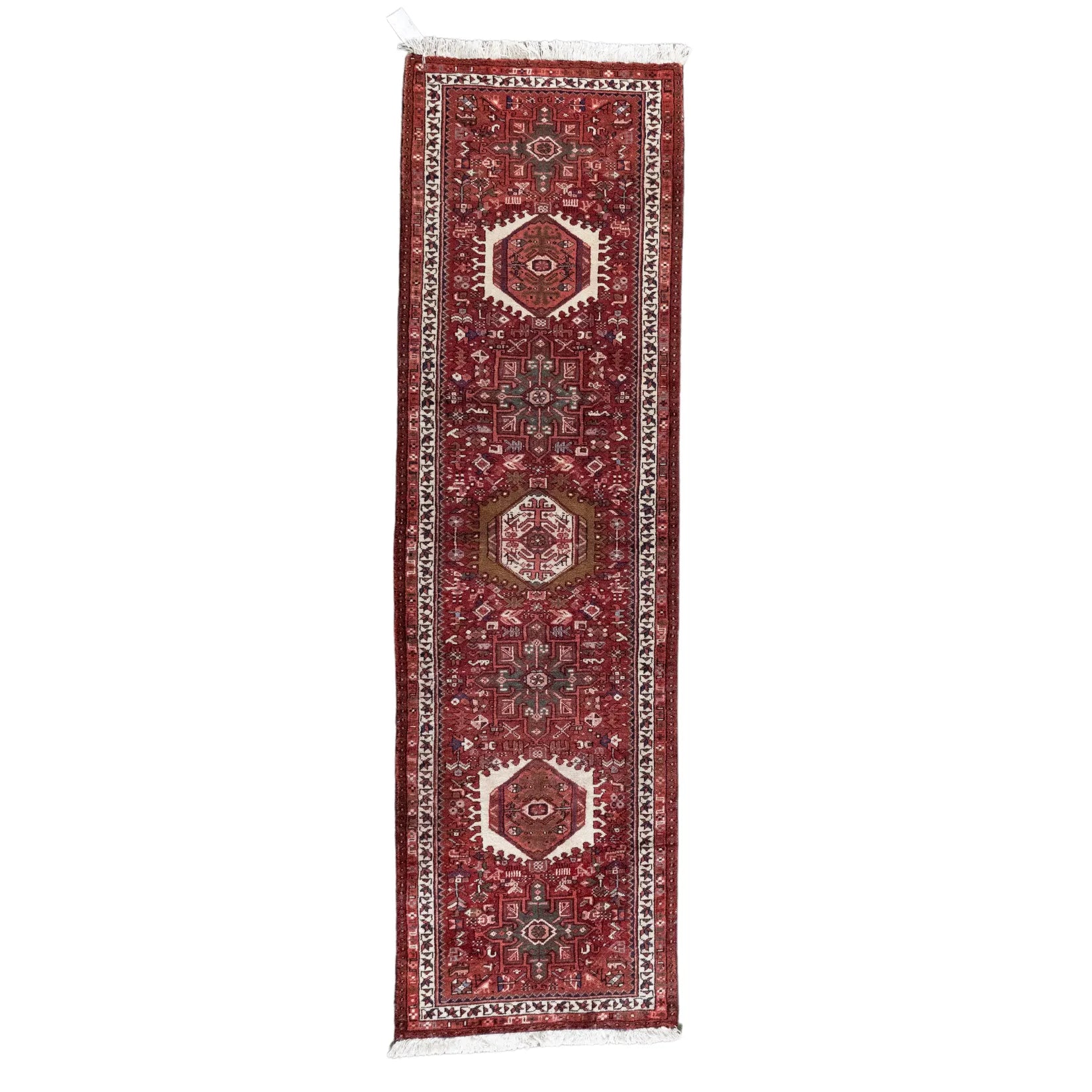 Add a Bold Touch with GEOMETRIC Style. This stunning KARAJEH rug, crafted in a striking geometric style, brings a modern and bold look to your home. The clean, sharp lines and symmetrical patterns on the RED base create a dynamic visual effect, making this rug a perfect statement piece. The contrasting RED border adds a touch of sophistication, enhancing the overall design. Whether placed in your living room, office, or any open space, the geometric pattern brings structure and energy to the decor. Sourced from PERSIAN, this handmade rug is a long-lasting investment in craftsmanship and style. Measuring 2' 7" x 8' 10" (imperial) or 79 x 269 (metric), it not only elevates your space but is built to stand the test of time.