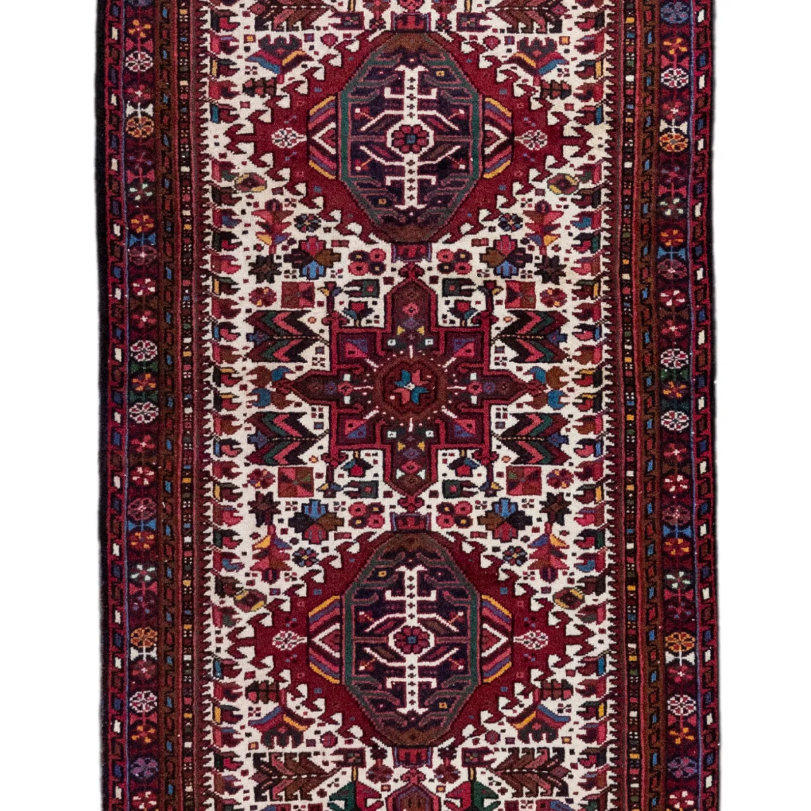 Add a Bold Touch with GEOMETRIC Style. This stunning KARAJEH rug, crafted in a striking geometric style, brings a modern and bold look to your home. The clean, sharp lines and symmetrical patterns on the RED base create a dynamic visual effect, making this rug a perfect statement piece. The contrasting BLUE border adds a touch of sophistication, enhancing the overall design. Whether placed in your living room, office, or any open space, the geometric pattern brings structure and energy to the decor. Sourced from PERSIAN, this handmade rug is a long-lasting investment in craftsmanship and style. Measuring 3' 0" x 12' 2" (imperial) or 91 x 371 (metric), it not only elevates your space but is built to stand the test of time.