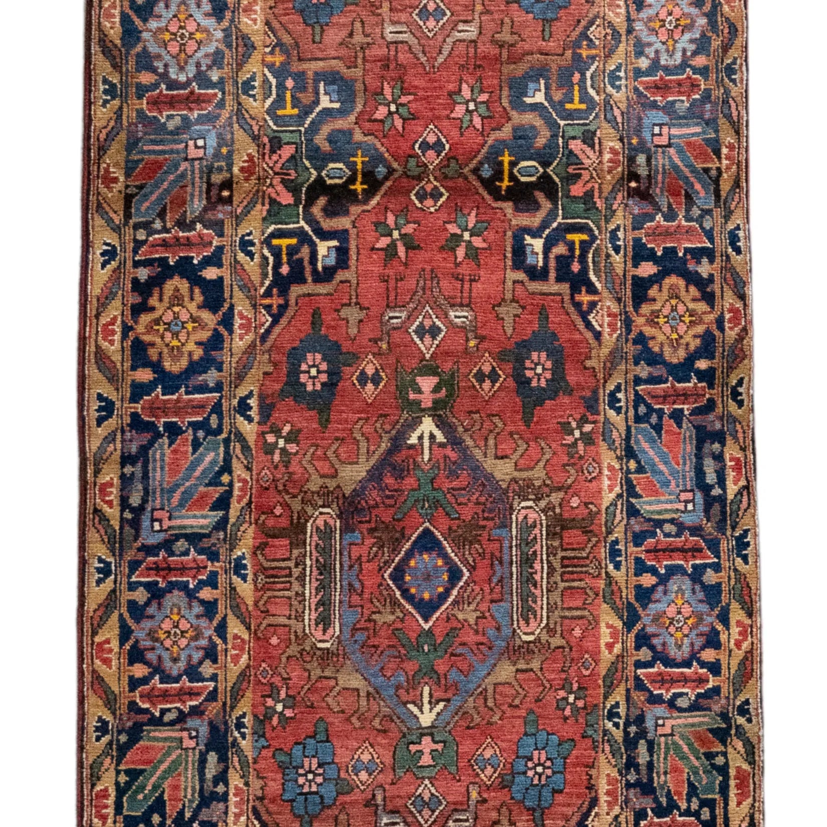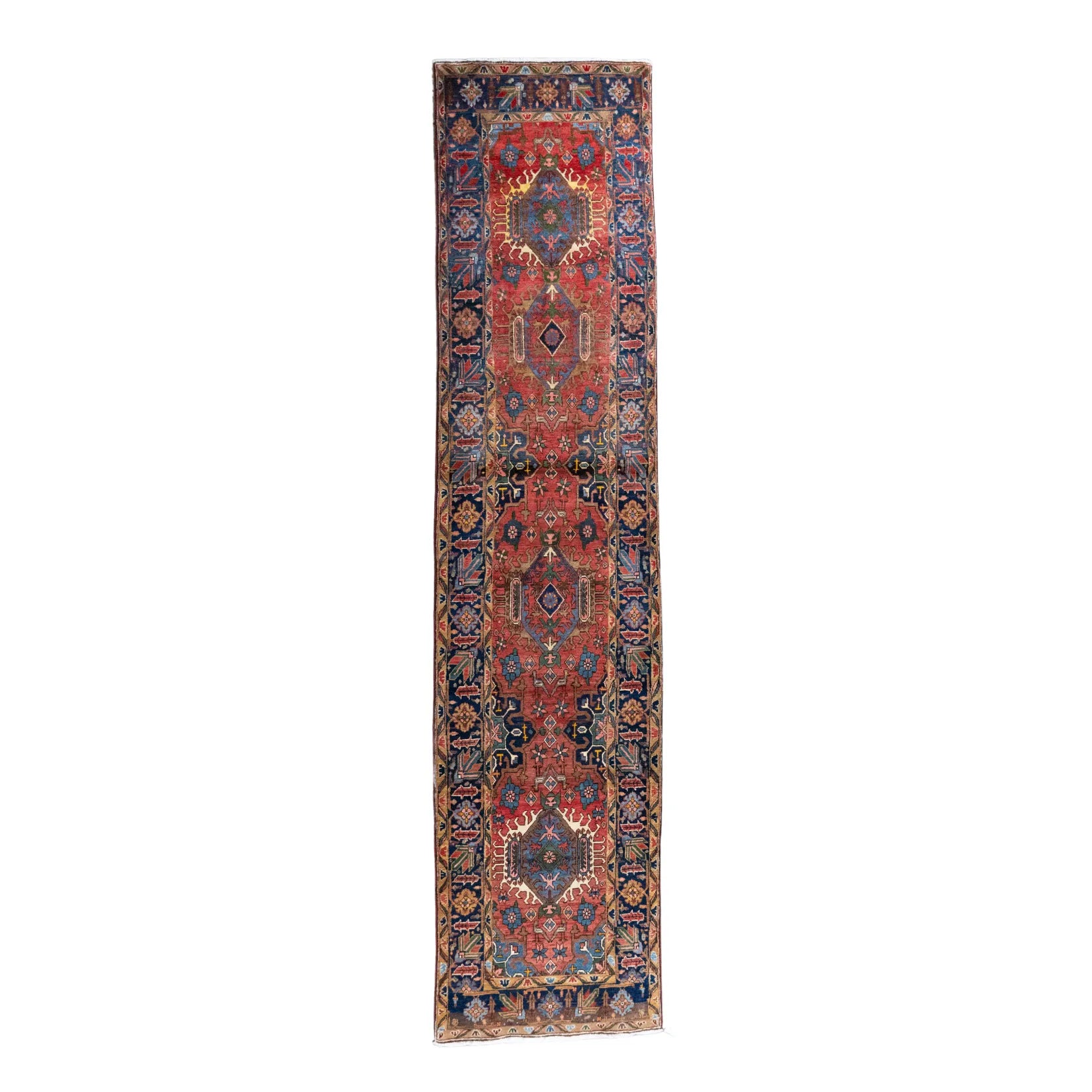 Add a Bold Touch with GEOMETRIC Style. This stunning KARAJEH rug, crafted in a striking geometric style, brings a modern and bold look to your home. The clean, sharp lines and symmetrical patterns on the RUST base create a dynamic visual effect, making this rug a perfect statement piece. The contrasting BLUE border adds a touch of sophistication, enhancing the overall design. Whether placed in your living room, office, or any open space, the geometric pattern brings structure and energy to the decor. Sourced from PERSIAN, this handmade rug is a long-lasting investment in craftsmanship and style. Measuring 3' 3" x 14' 3" (imperial) or 99 x 434 (metric), it not only elevates your space but is built to stand the test of time.