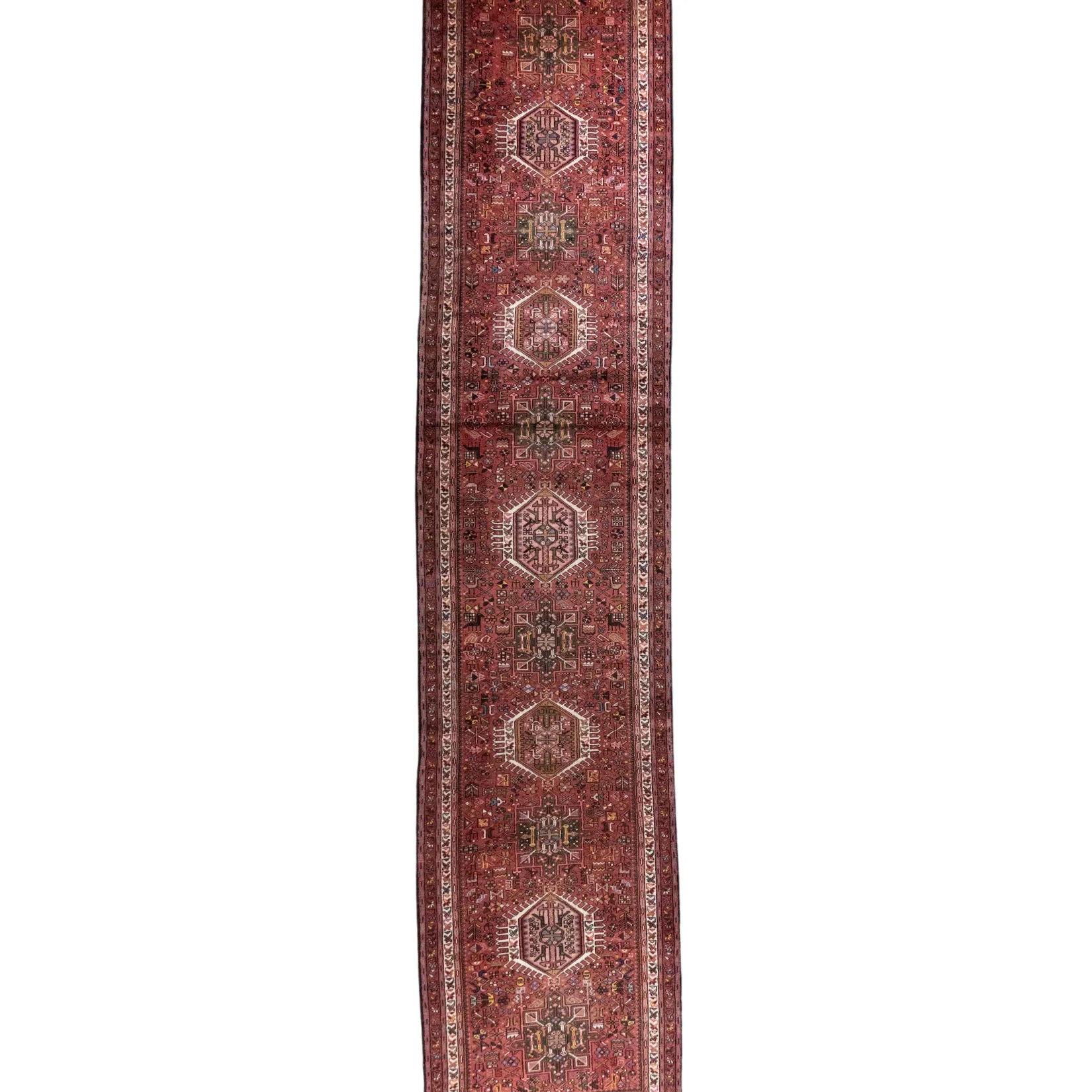 3' 5" x 15' 9" - RED AND NAVY KARAJEH GEOMETRIC PERSIAN RUG ( 104 x 480 CM )