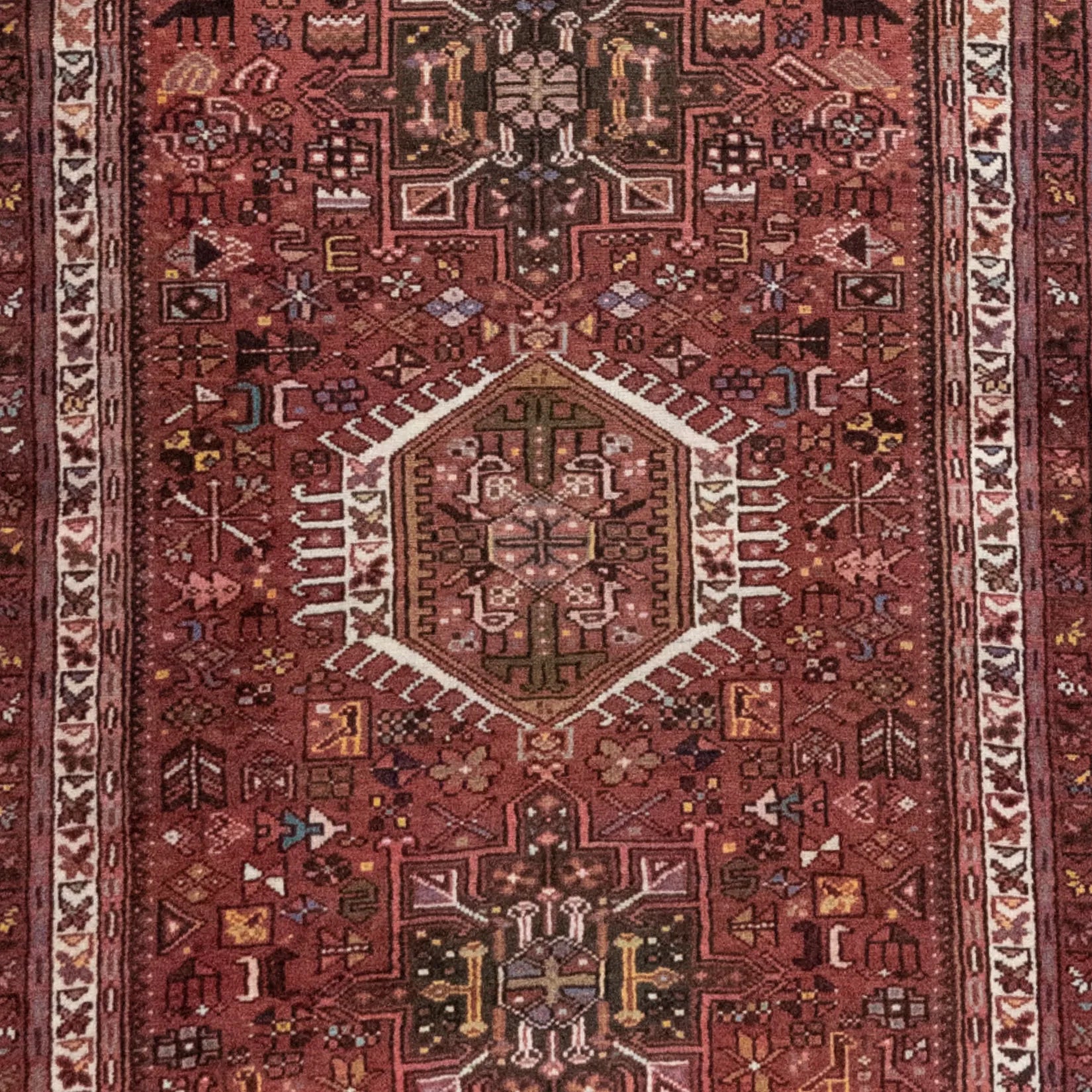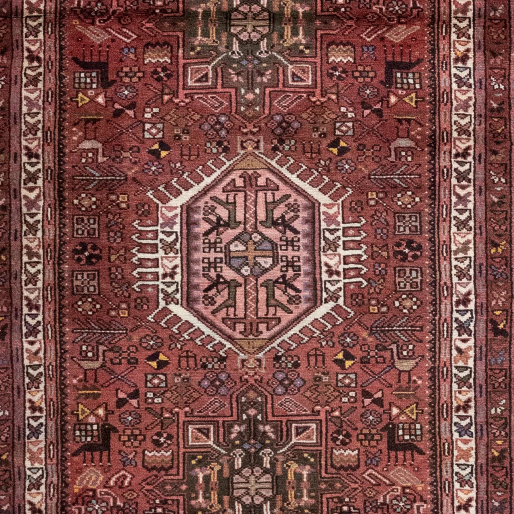 Add a Bold Touch with GEOMETRIC Style. This stunning KARAJEH rug, crafted in a striking geometric style, brings a modern and bold look to your home. The clean, sharp lines and symmetrical patterns on the RED base create a dynamic visual effect, making this rug a perfect statement piece. The contrasting NAVY border adds a touch of sophistication, enhancing the overall design. Whether placed in your living room, office, or any open space, the geometric pattern brings structure and energy to the decor. Sourced from PERSIAN, this handmade rug is a long-lasting investment in craftsmanship and style. Measuring 3' 5" x 15' 9" (imperial) or 104 x 480 (metric), it not only elevates your space but is built to stand the test of time.