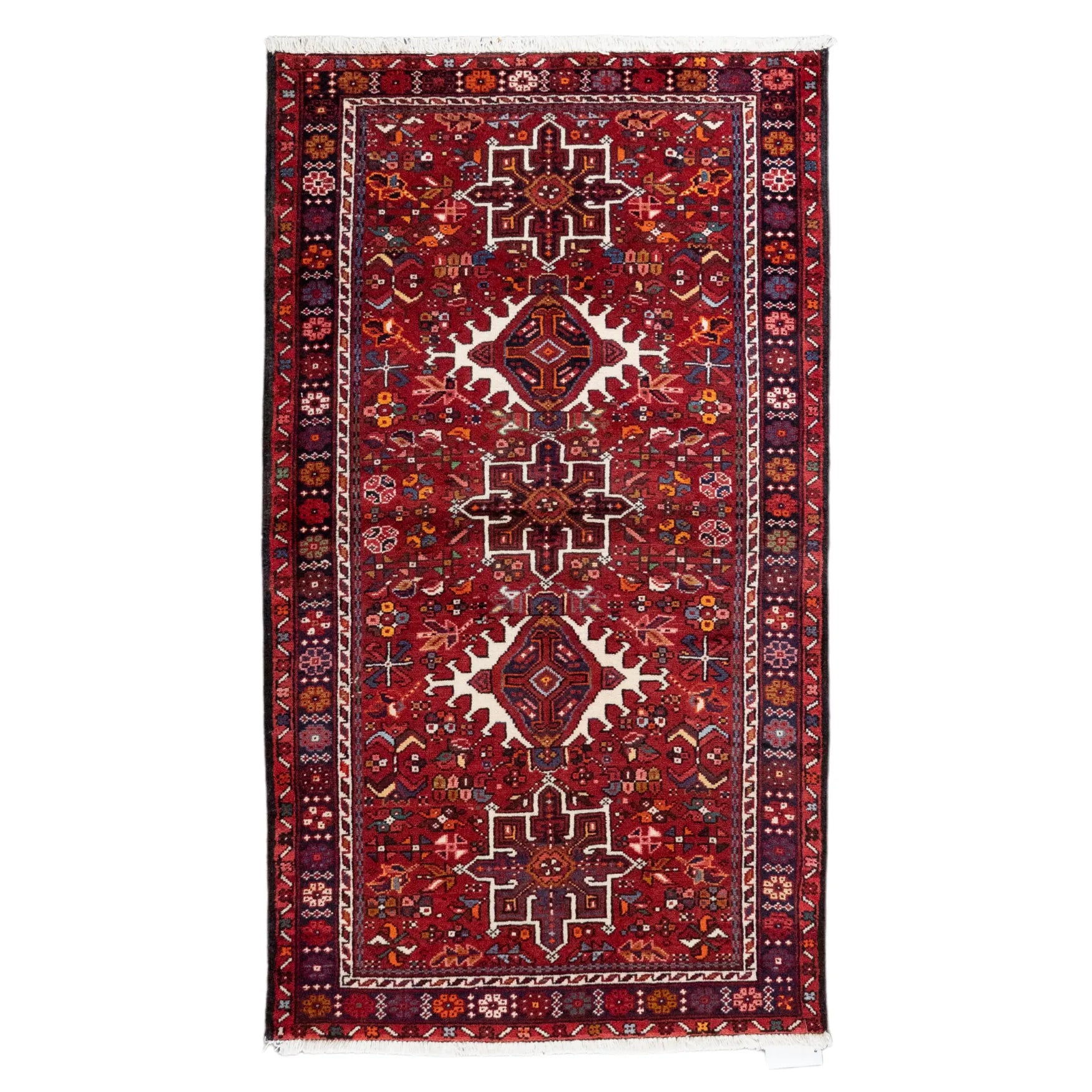 3' 7" x 6' 3" - NAVY AND RED KARAJEH GEOMETRIC PERSIAN RUG ( 109 x 190 CM )