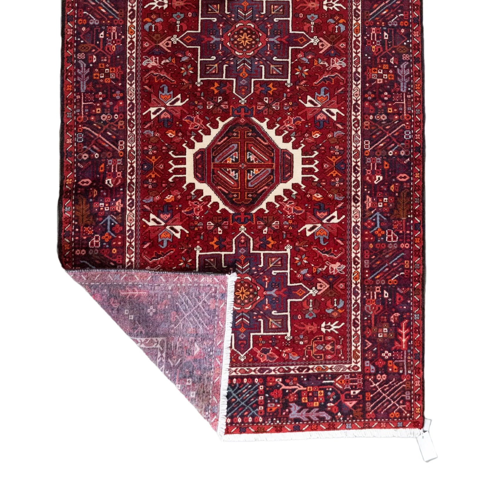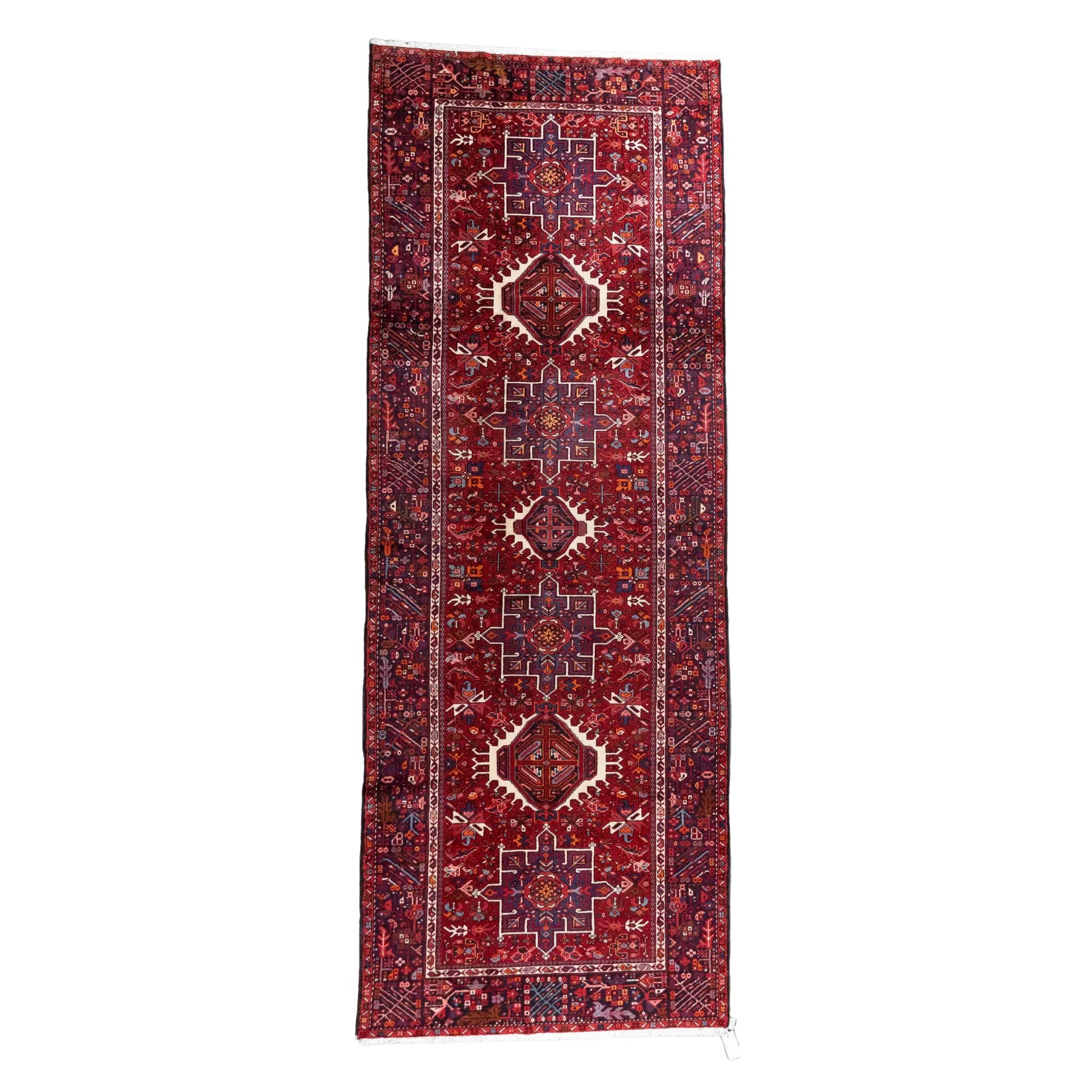 4' 10" x 13' 1" - RED AND BLUE KARAJEH GEOMETRIC PERSIAN RUG ( 147 x 399 CM )