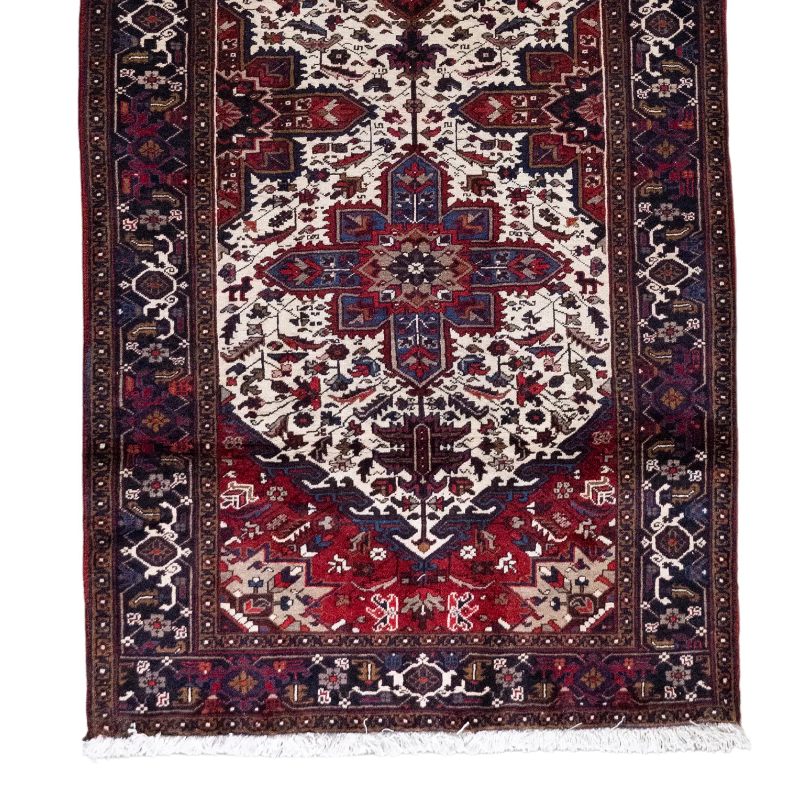 Add a Bold Touch with GEOMETRIC Style. This stunning HERIZ rug, crafted in a striking geometric style, brings a modern and bold look to your home. The clean, sharp lines and symmetrical patterns on the RED base create a dynamic visual effect, making this rug a perfect statement piece. The contrasting NAVY border adds a touch of sophistication, enhancing the overall design. Whether placed in your living room, office, or any open space, the geometric pattern brings structure and energy to the decor. Sourced from PERSIAN, this handmade rug is a long-lasting investment in craftsmanship and style. Measuring 4' 11" x 12' 0" (imperial) or 150 x 366 (metric), it not only elevates your space but is built to stand the test of time.