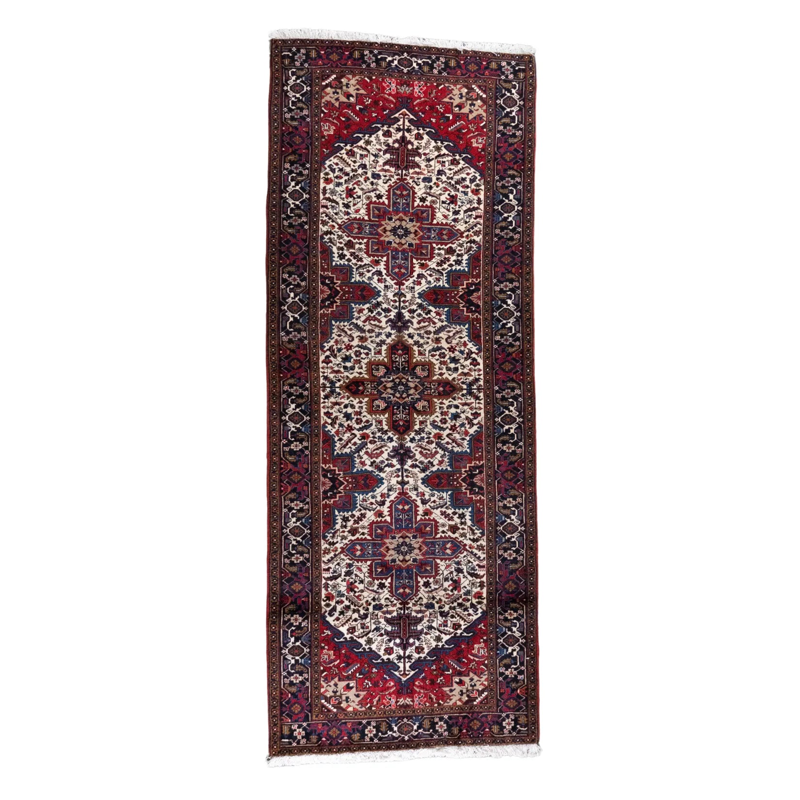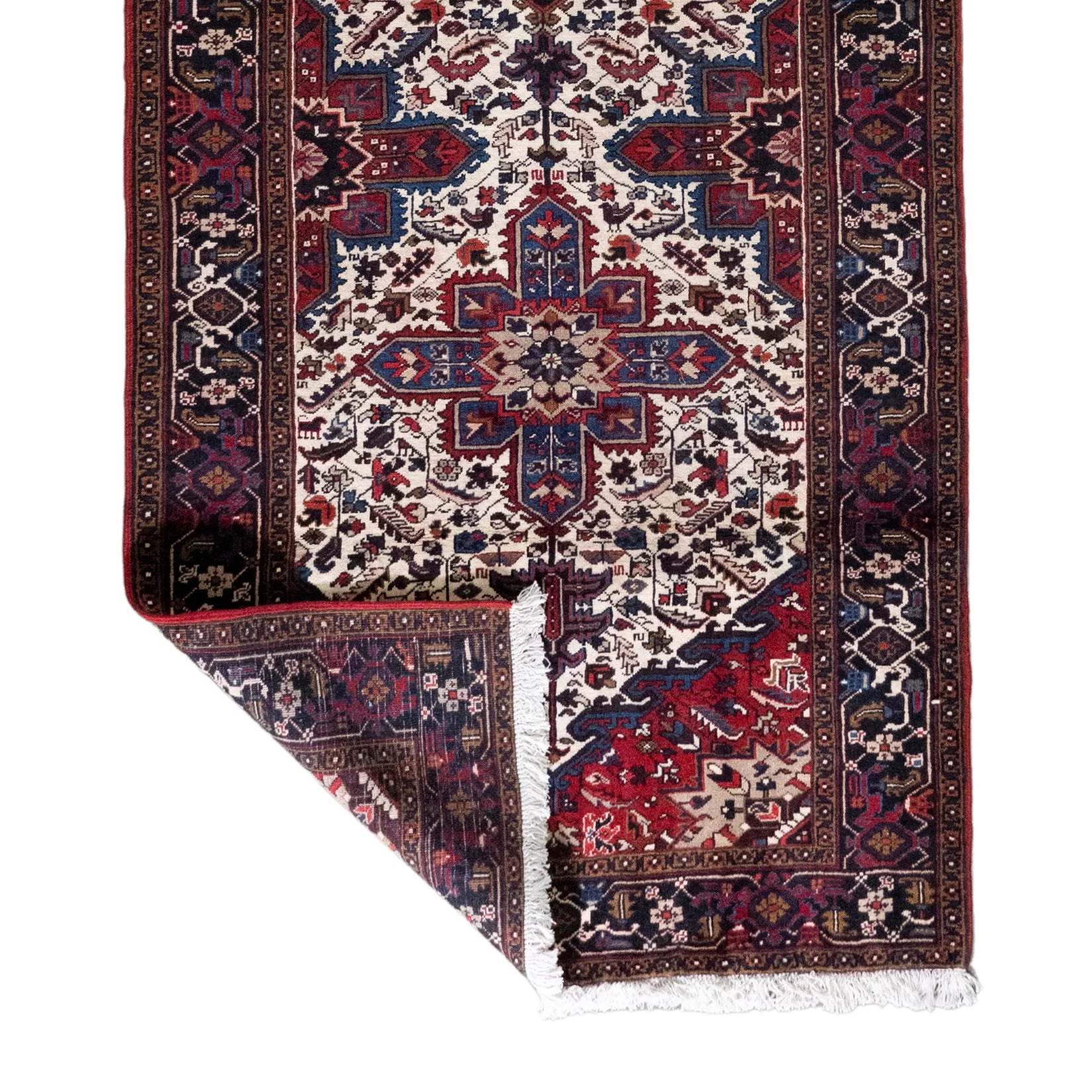 4' 11" x 12' 10" - RED AND NAVY HERIZ GEOMETRIC PERSIAN RUG ( 150 x 391 CM )