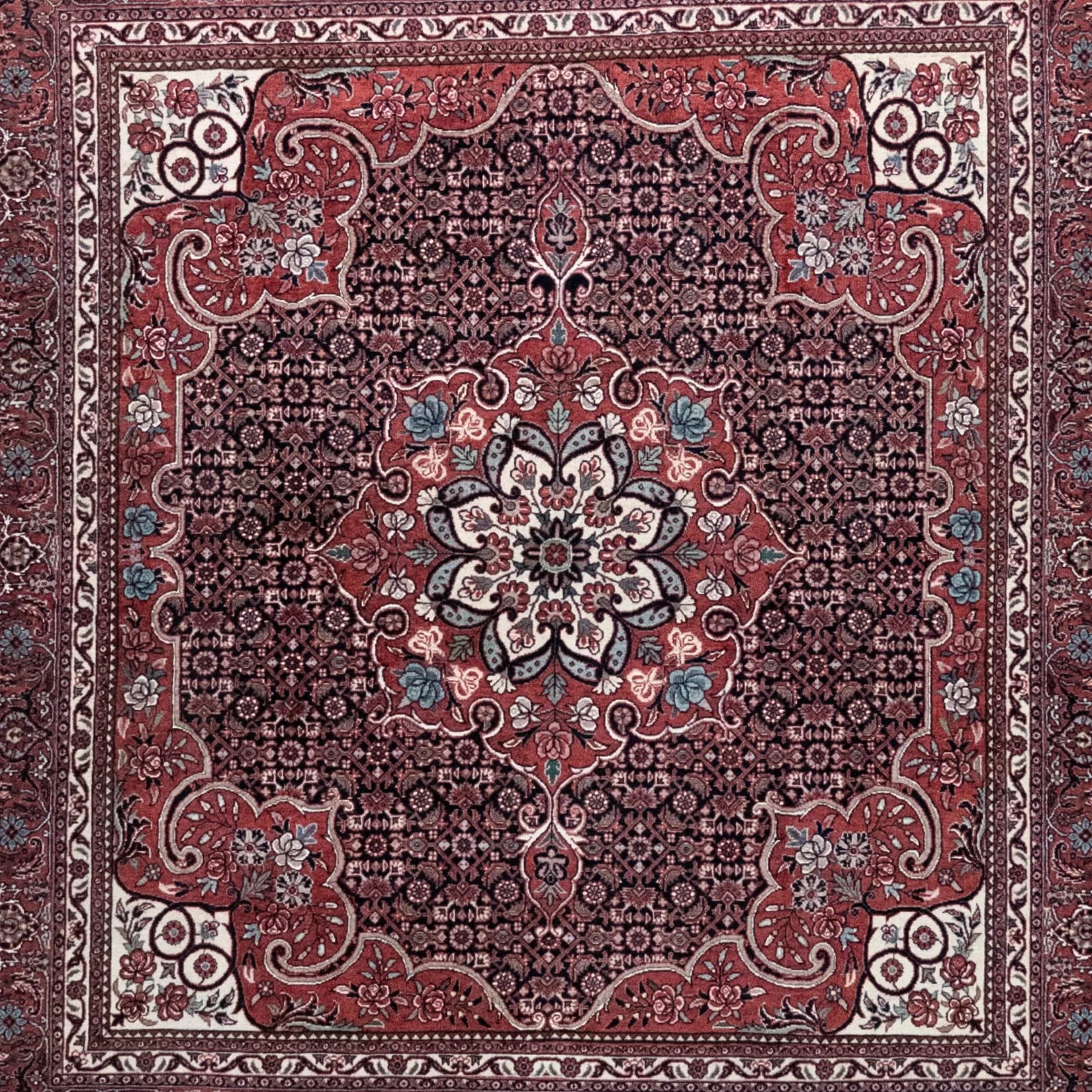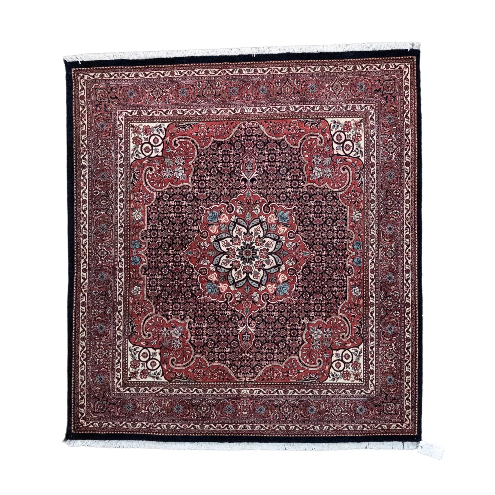 Add a Bold Touch with GEOMETRIC Style. This stunning BIJAR rug, crafted in a striking geometric style, brings a modern and bold look to your home. The clean, sharp lines and symmetrical patterns on the RED base create a dynamic visual effect, making this rug a perfect statement piece. The contrasting RED border adds a touch of sophistication, enhancing the overall design. Whether placed in your living room, office, or any open space, the geometric pattern brings structure and energy to the decor. Sourced from PERSIAN, this handmade rug is a long-lasting investment in craftsmanship and style. Measuring 5' 0" x 5' 6" (imperial) or 152 x 167 (metric), it not only elevates your space but is built to stand the test of time.