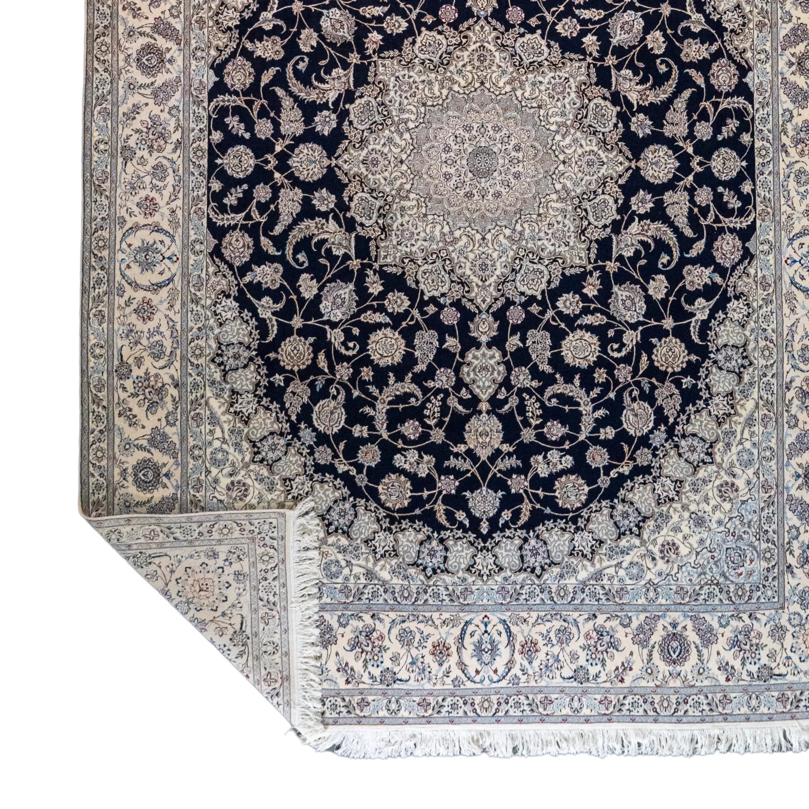 Enhance Your Space with Classic FLORAL Beauty. This beautiful NAEIN rug, crafted in a classic FLORAL style, brings a warm, welcoming feel to your home. The rich NAVY background, combined with its elegant WHITE border, creates a bold yet timeless look. The soft colors and intricate design make this rug perfect for adding character and style to your living room, dining area, or any space that needs a fresh update. Sourced from PERSIAN, this handmade rug is not only a stunning decorative piece but also a valuable investment in quality craftsmanship. Measuring 8' 6" x 11' 9" (imperial) or 259 x 358 (metric), its durable construction ensures it will last for years, making it a timeless addition to your decor.