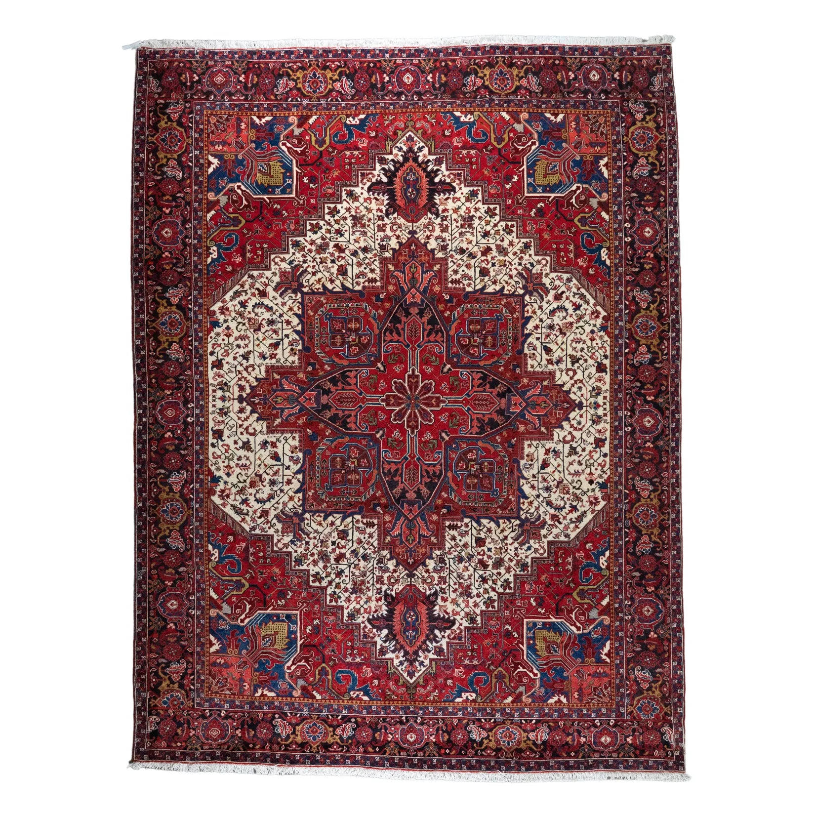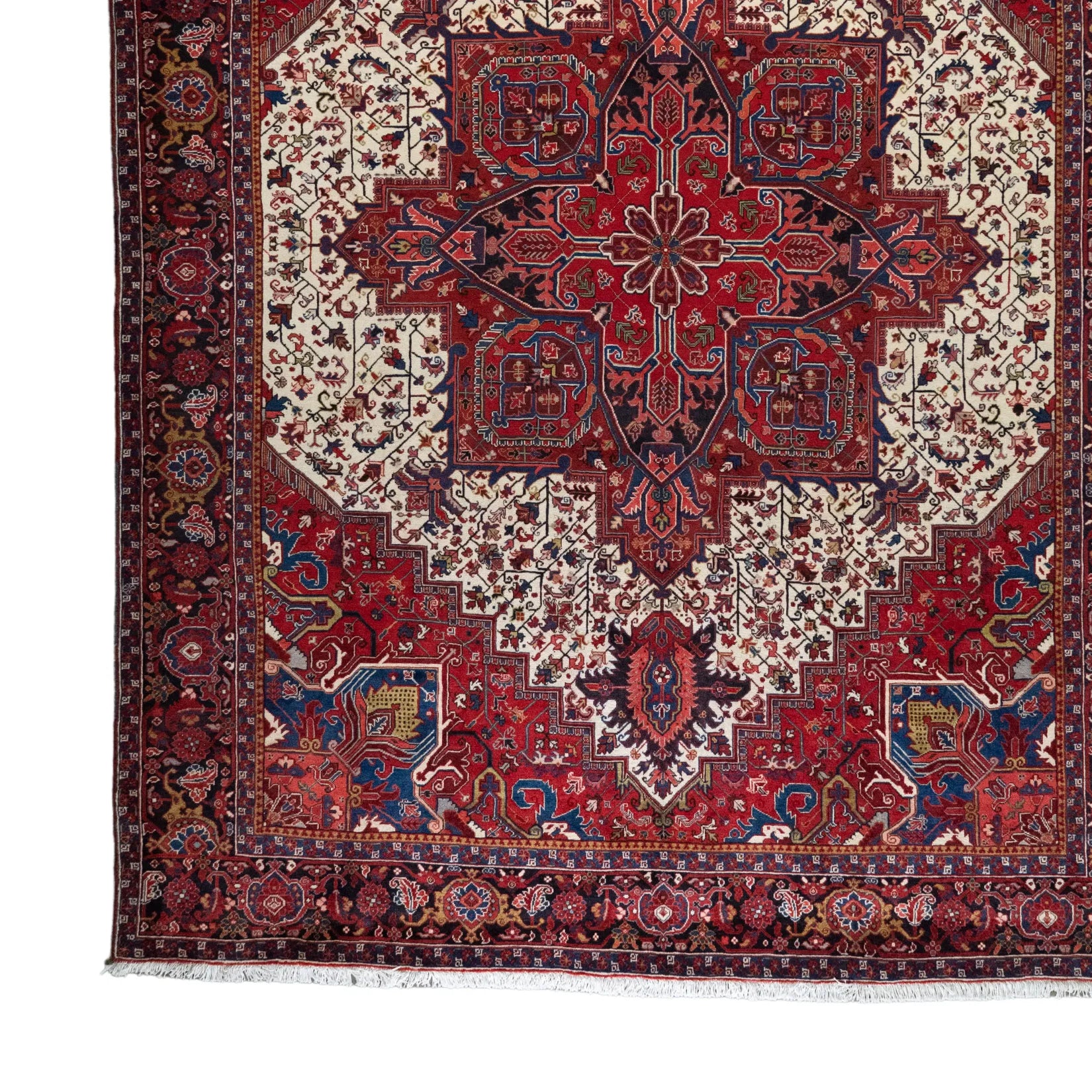 Add a Bold Touch with GEOMETRIC Style. This stunning HERIZ rug, crafted in a striking geometric style, brings a modern and bold look to your home. The clean, sharp lines and symmetrical patterns on the RED base create a dynamic visual effect, making this rug a perfect statement piece. The contrasting NAVY border adds a touch of sophistication, enhancing the overall design. Whether placed in your living room, office, or any open space, the geometric pattern brings structure and energy to the decor. Sourced from PERSIAN, this handmade rug is a long-lasting investment in craftsmanship and style. Measuring 9' 10" x 13' 1" (imperial) or 300 x 399 (metric), it not only elevates your space but is built to stand the test of time.