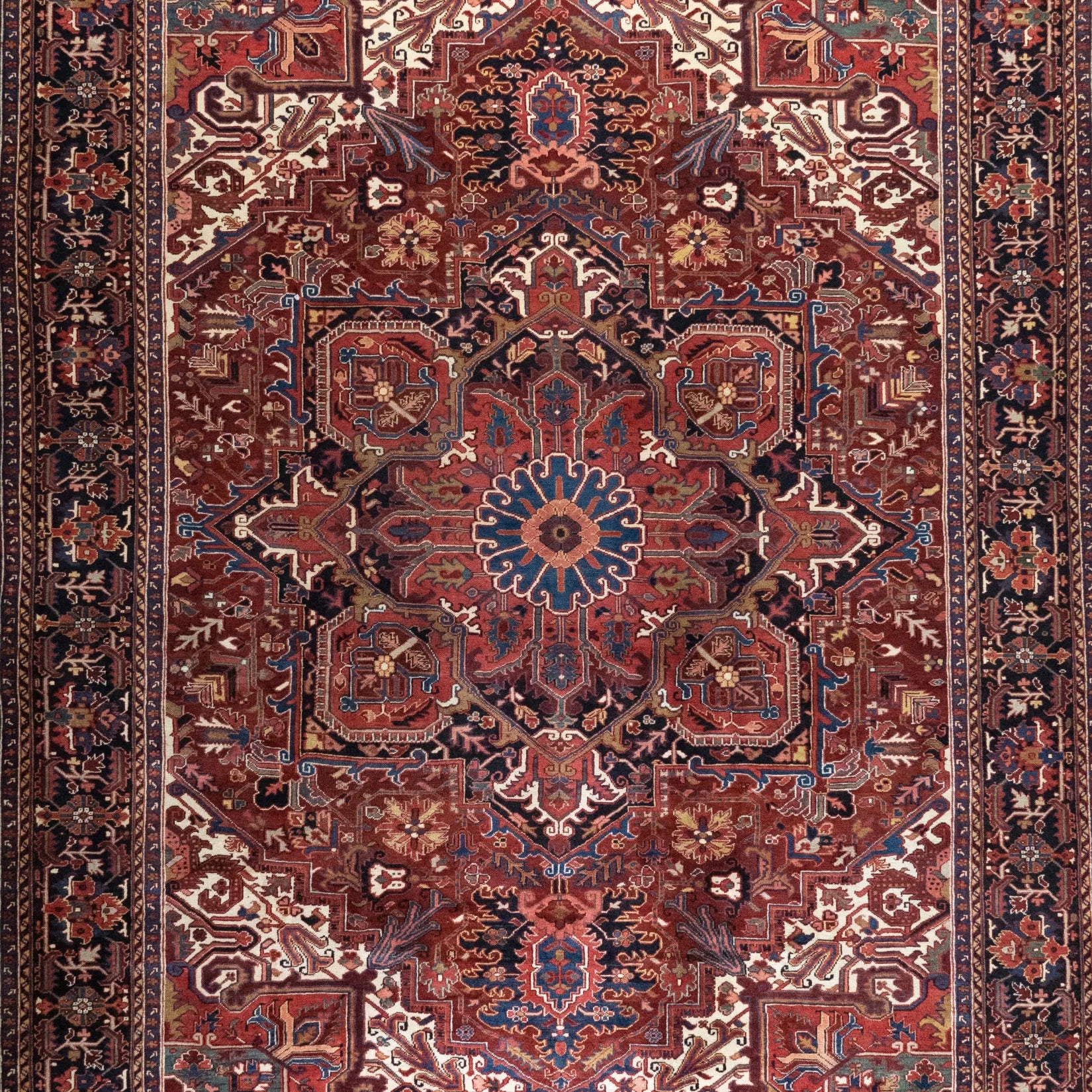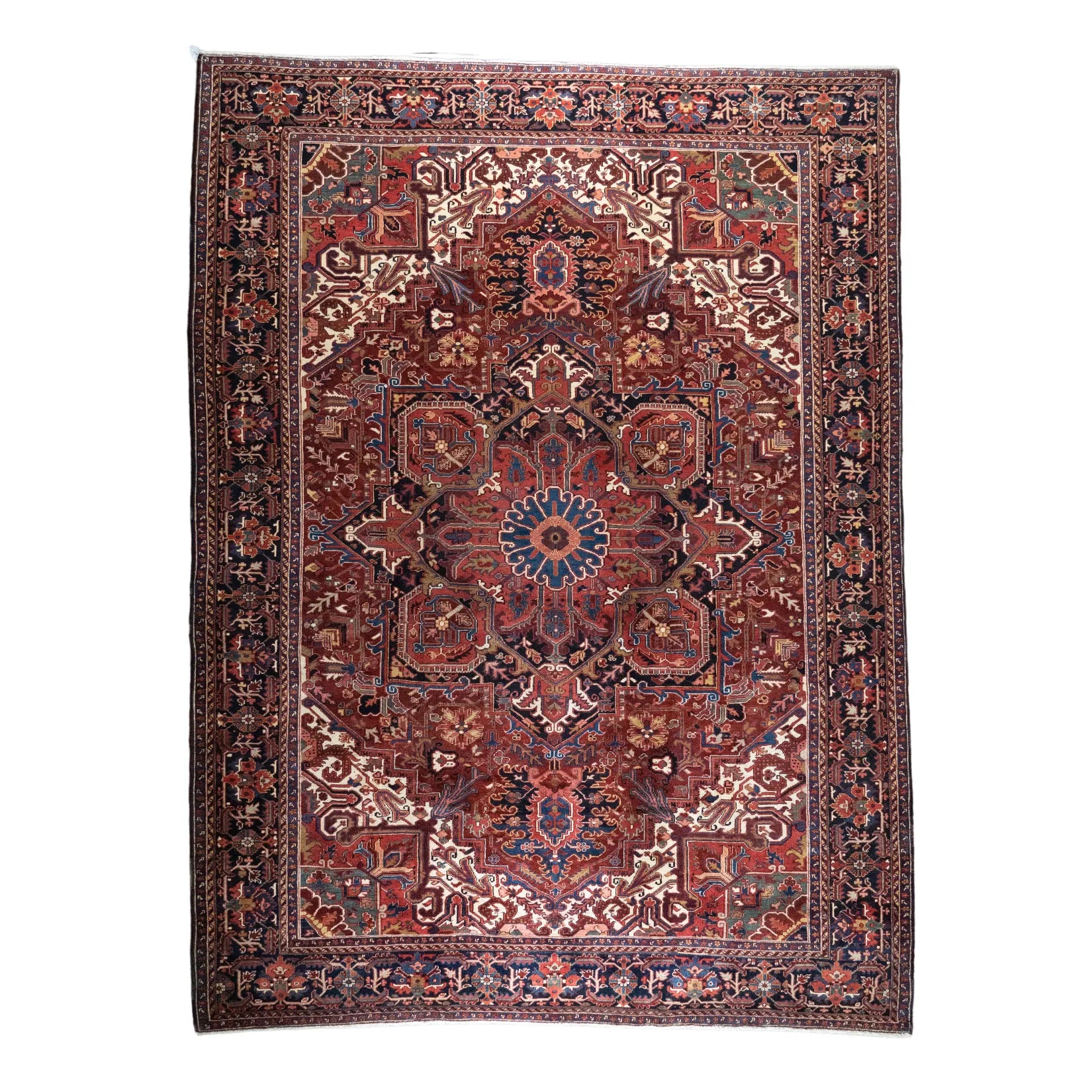 Add a Bold Touch with GEOMETRIC Style. This stunning HERIZ rug, crafted in a striking geometric style, brings a modern and bold look to your home. The clean, sharp lines and symmetrical patterns on the NAVY base create a dynamic visual effect, making this rug a perfect statement piece. The contrasting NAVY border adds a touch of sophistication, enhancing the overall design. Whether placed in your living room, office, or any open space, the geometric pattern brings structure and energy to the decor. Sourced from PERSIAN, this handmade rug is a long-lasting investment in craftsmanship and style. Measuring 9' 10" x 13' 5" (imperial) or 300 x 409 (metric), it not only elevates your space but is built to stand the test of time.