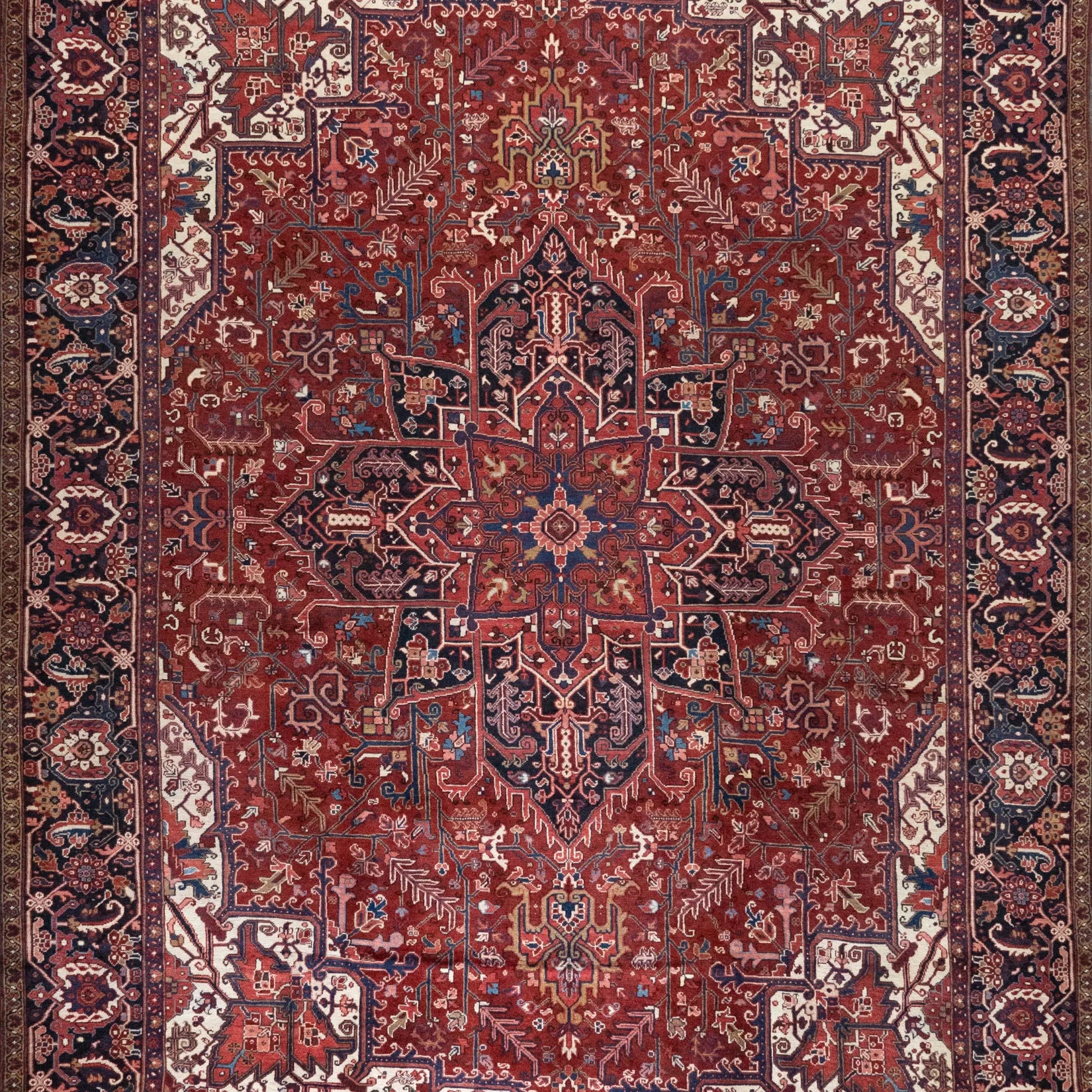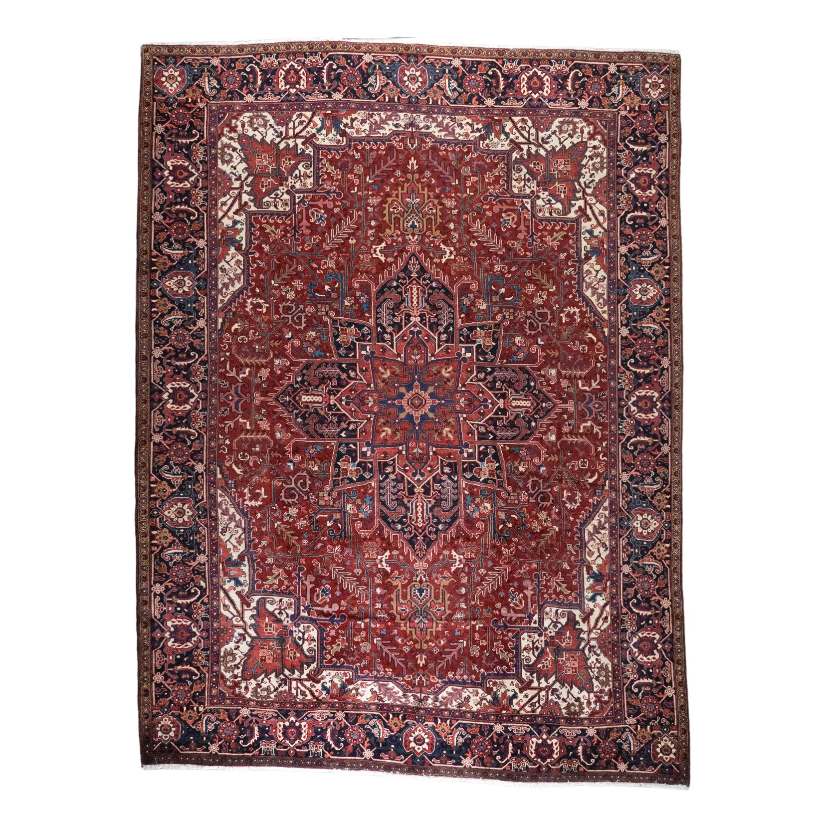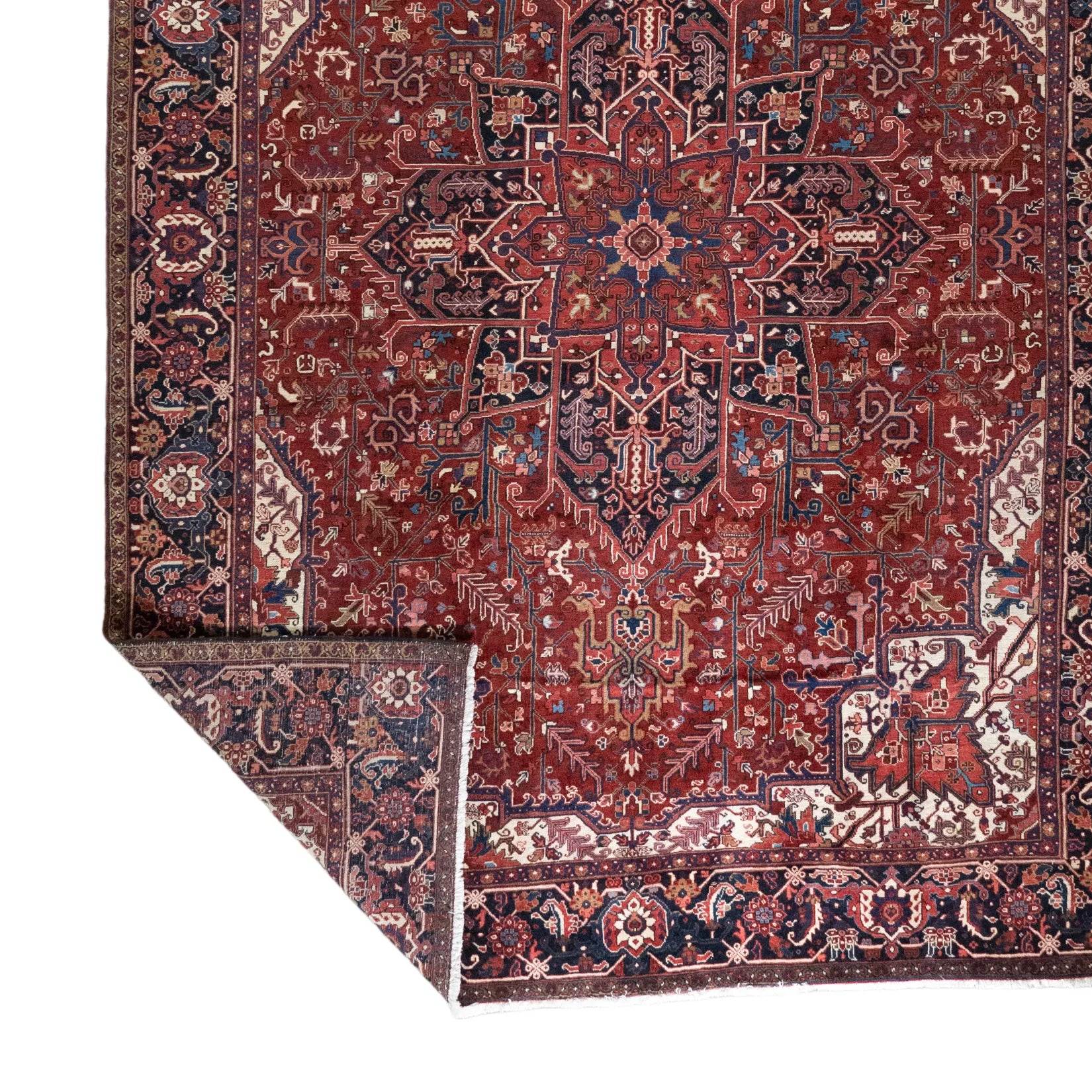 Add a Bold Touch with GEOMETRIC Style. This stunning HERIZ rug, crafted in a striking geometric style, brings a modern and bold look to your home. The clean, sharp lines and symmetrical patterns on the RED base create a dynamic visual effect, making this rug a perfect statement piece. The contrasting NAVY border adds a touch of sophistication, enhancing the overall design. Whether placed in your living room, office, or any open space, the geometric pattern brings structure and energy to the decor. Sourced from PERSIAN, this handmade rug is a long-lasting investment in craftsmanship and style. Measuring 9' 7" x 12' 10" (imperial) or 292 x 391 (metric), it not only elevates your space but is built to stand the test of time.