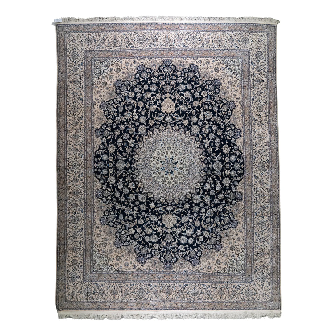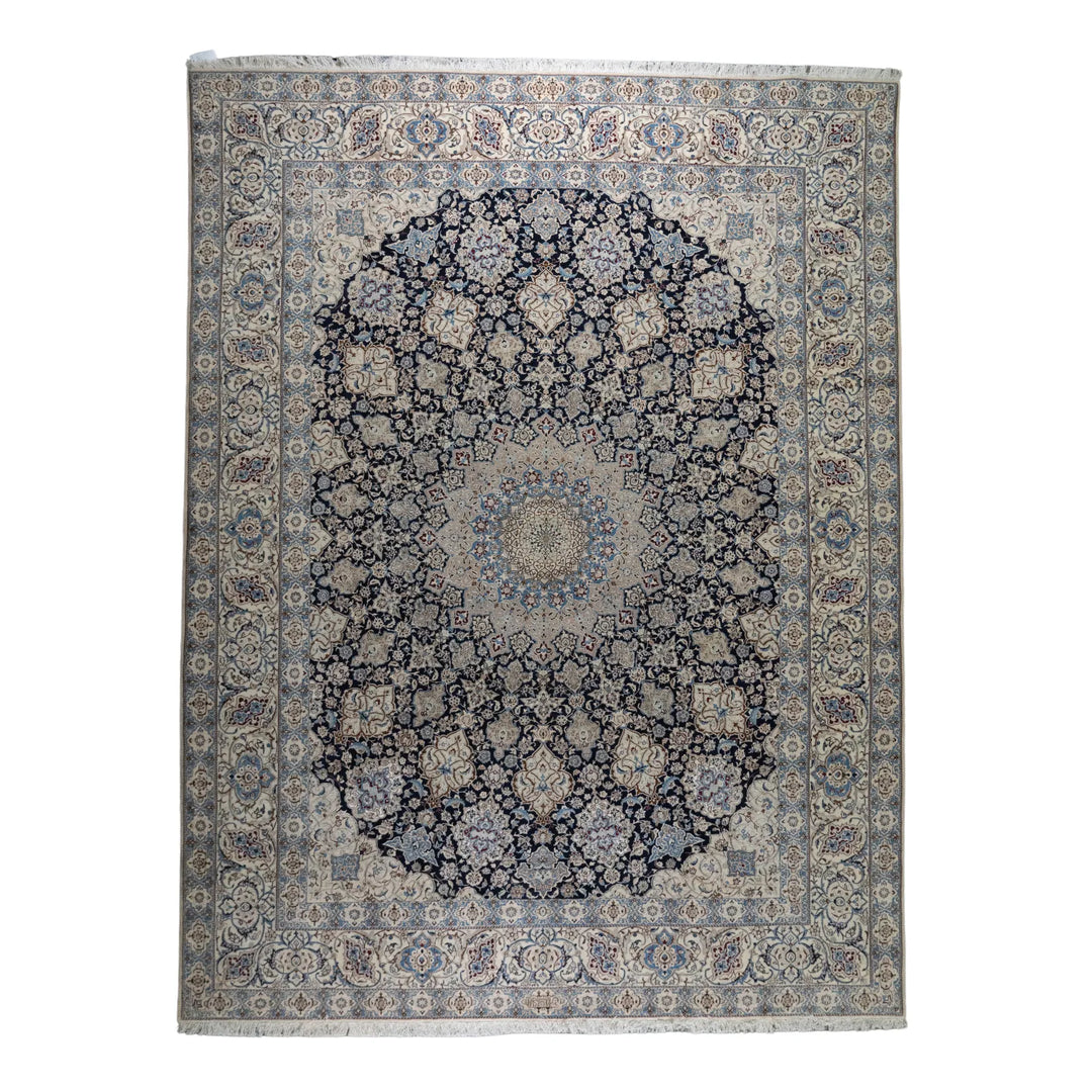 10' 2" x 13' 1" - NAVY AND BEIGE NAEIN FLORAL PERSIAN RUG ( 310 x 399 CM )