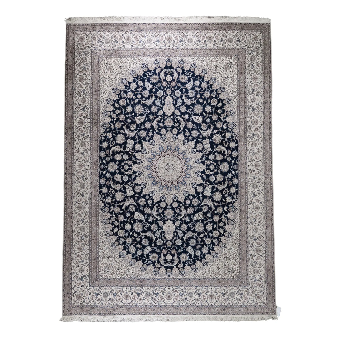 8' 4" x 12' 1" - NAVY AND WHITE NAEIN FLORAL PERSIAN RUG ( 254 x 368 CM )