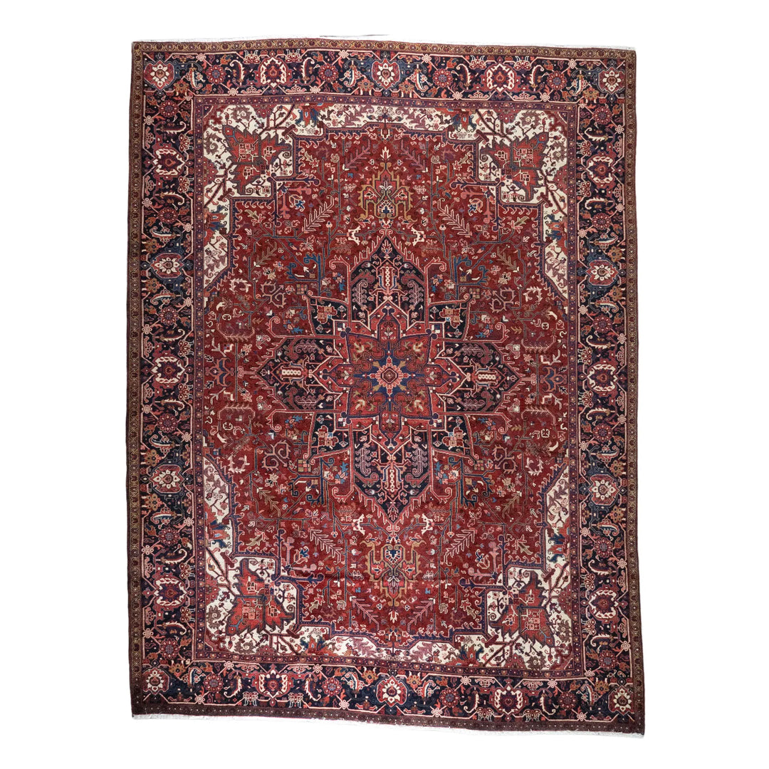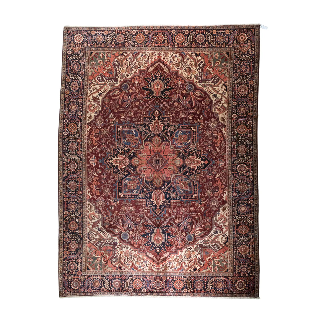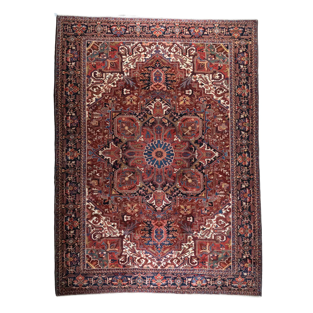 9' 7" x 12' 10" - RED AND NAVY HERIZ GEOMETRIC PERSIAN RUG ( 292 x 391 CM )