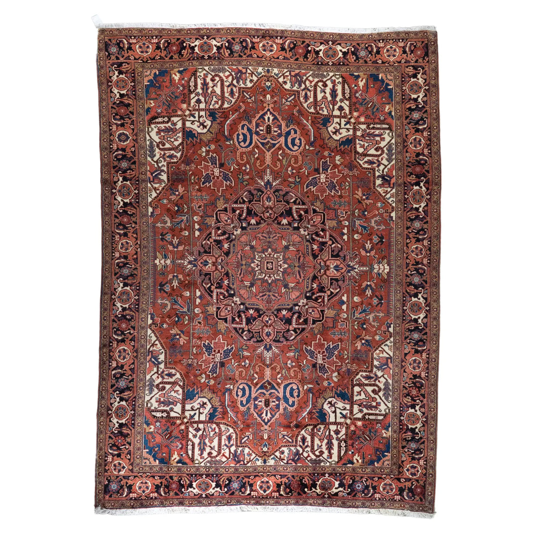 9' 5" x 12' 2" - RED AND NAVY HERIZ GEOMETRIC PERSIAN RUG ( 287 x 371 CM )