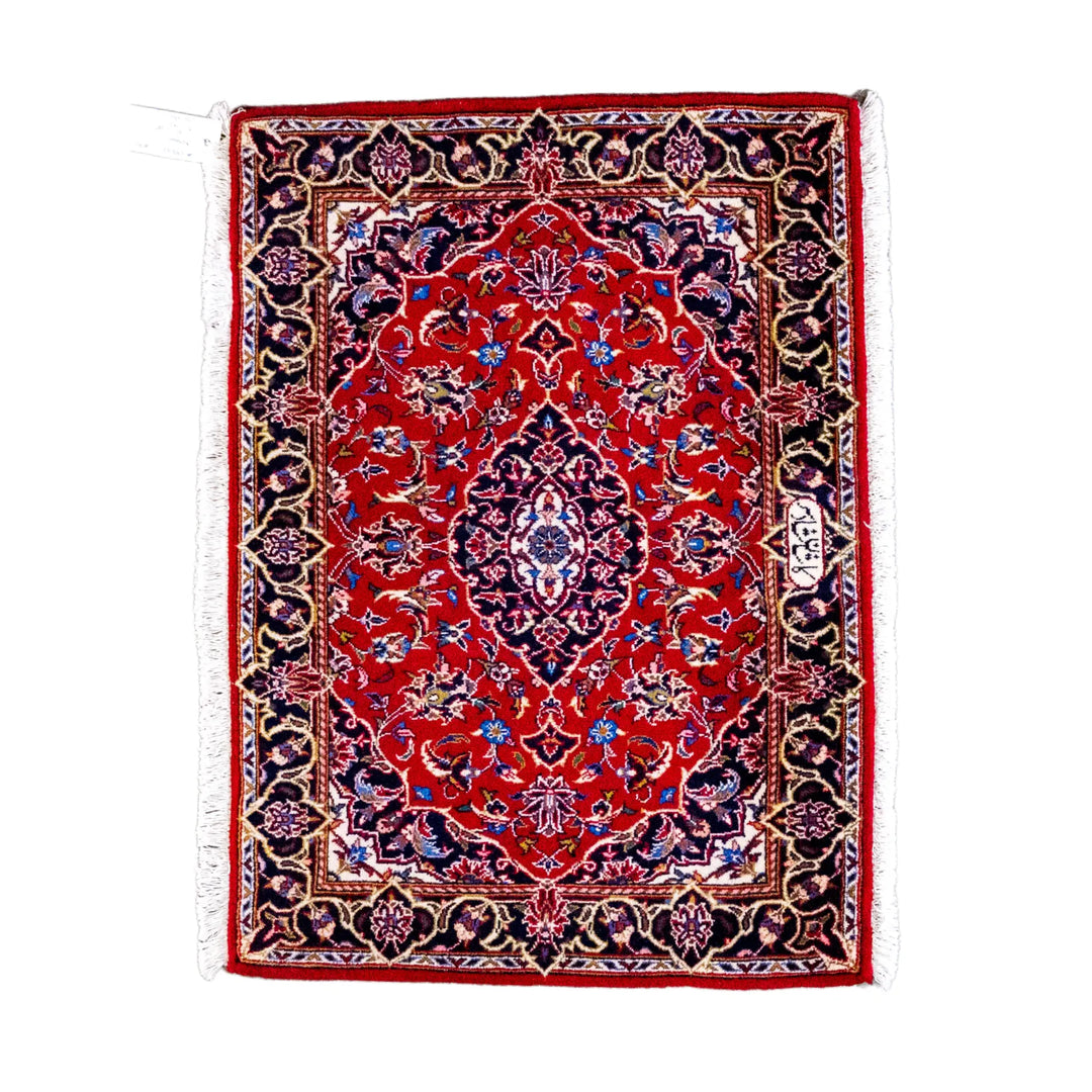2' 5" x 3' 3" - RED AND BLUE KASHAN FLORAL PERSIAN RUG ( 73 x 99 CM )