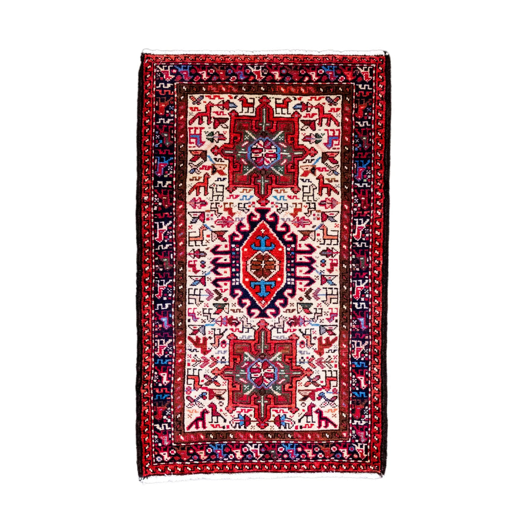 2' 0" x 3' 3" - RED AND RED KARAJEH GEOMETRIC PERSIAN RUG ( 61 x 99 CM )