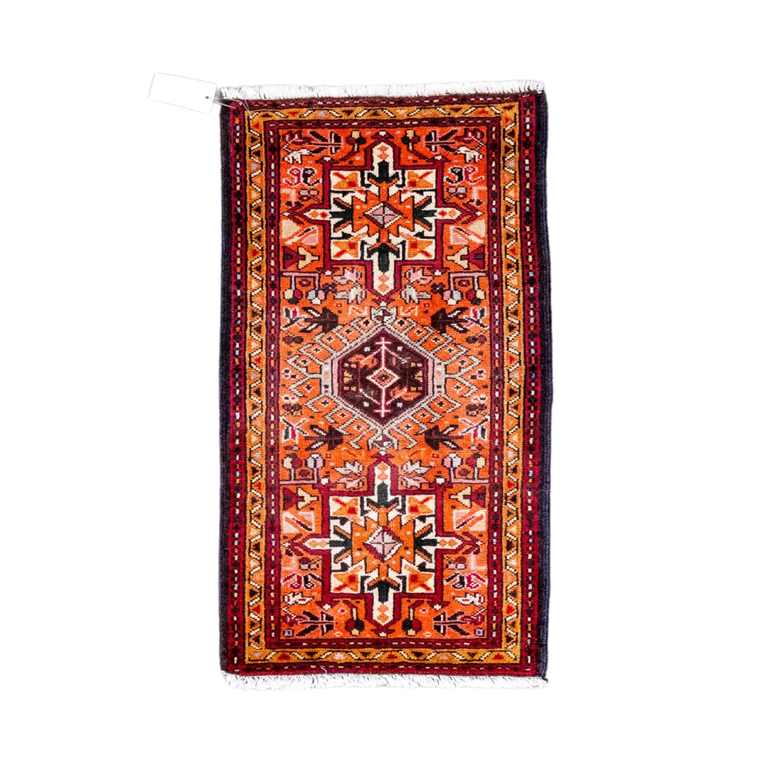 1' 11" x 3' 3" - RUST AND BLUE KARAJEH GEOMETRIC PERSIAN RUG ( 58 x 99 CM )