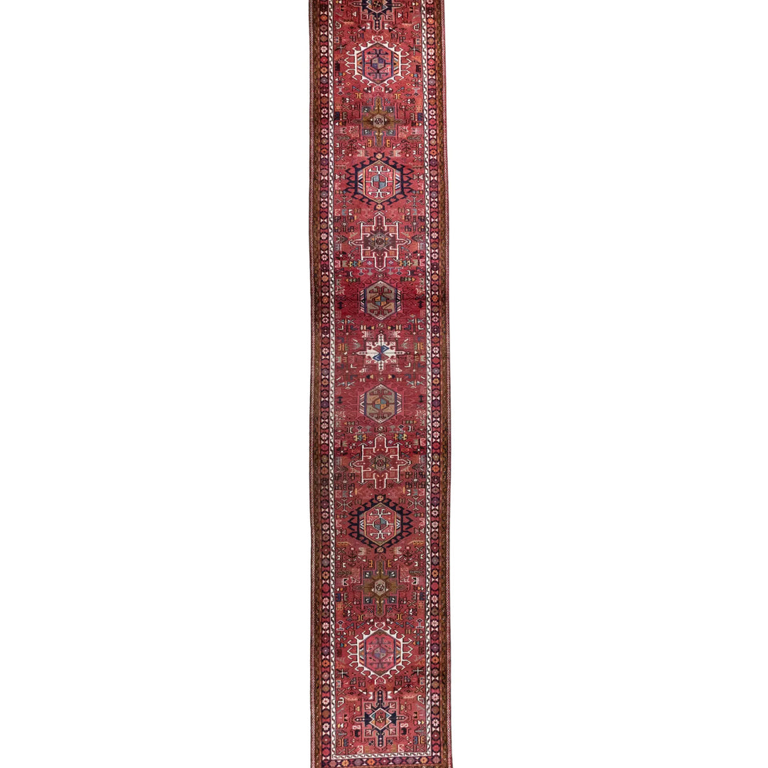 2' 7" x 15' 7" - RED AND NAVY KARAJEH GEOMETRIC PERSIAN RUG ( 79 x 475 CM )