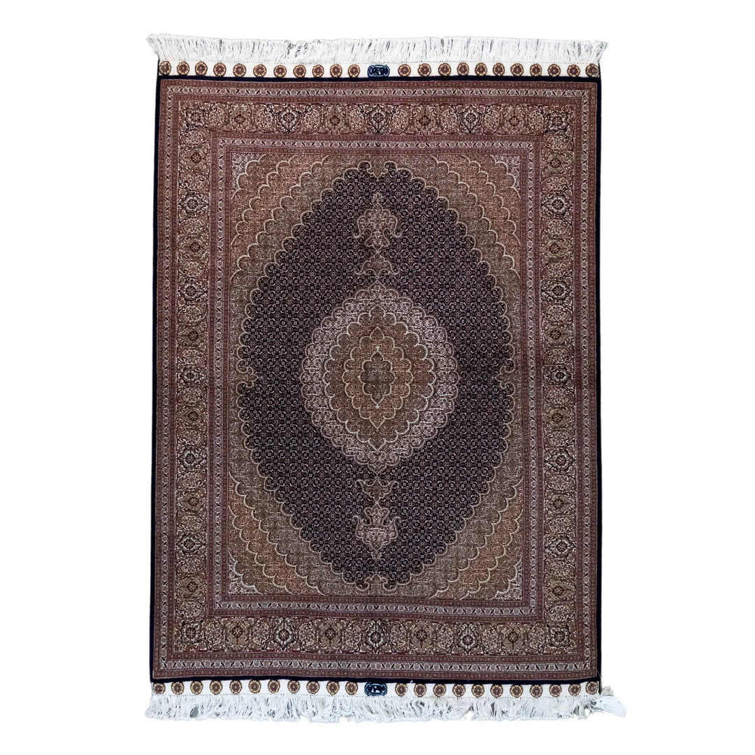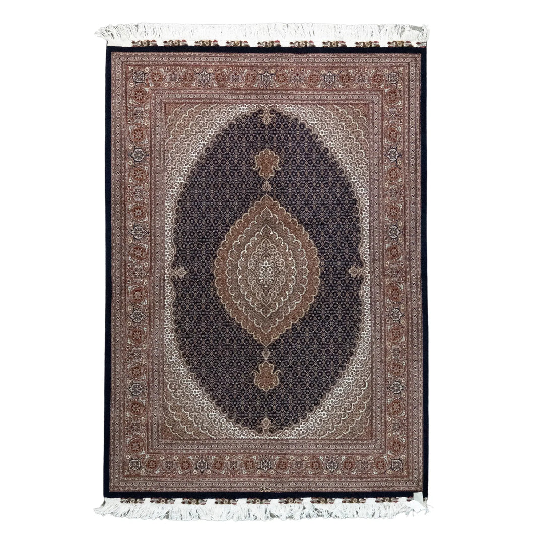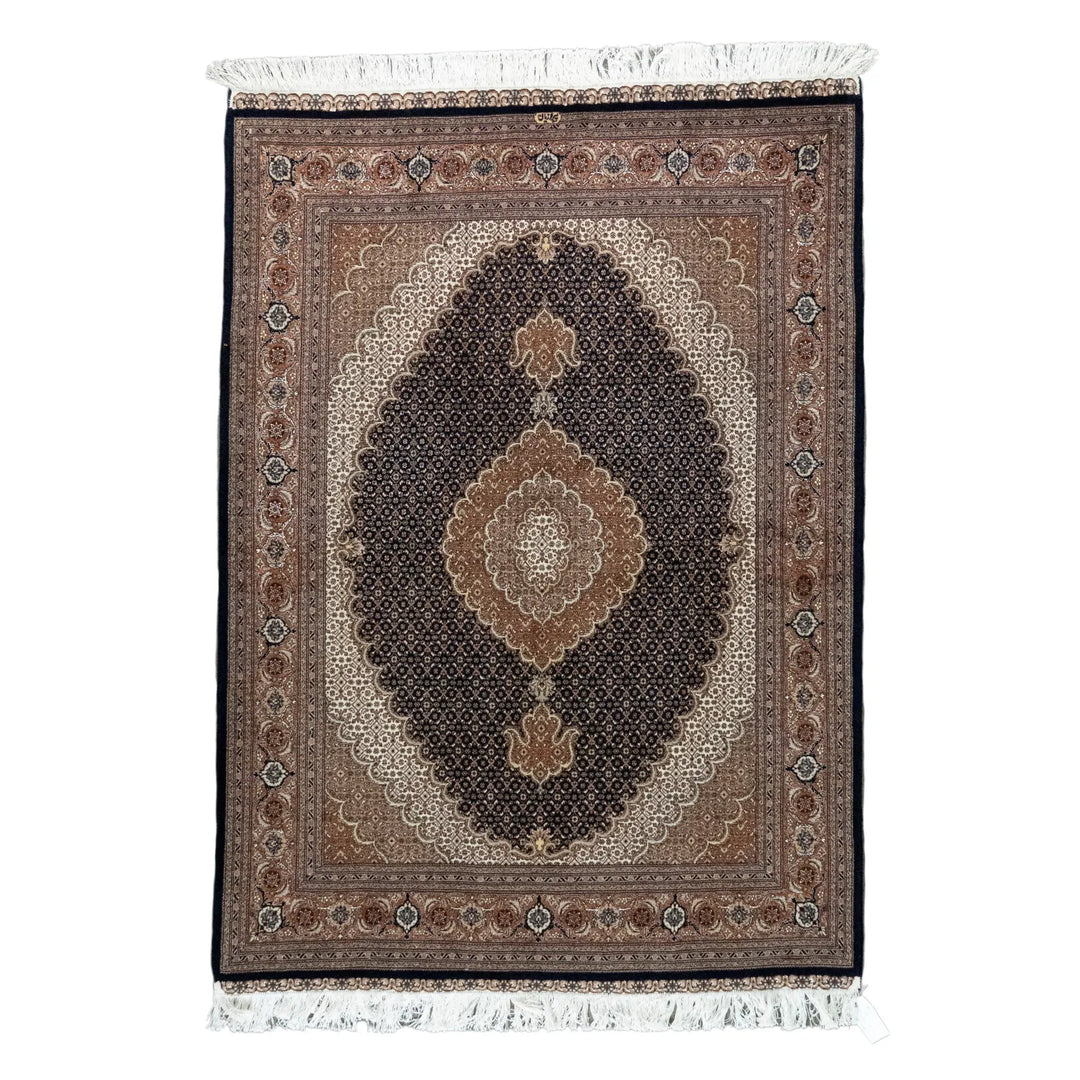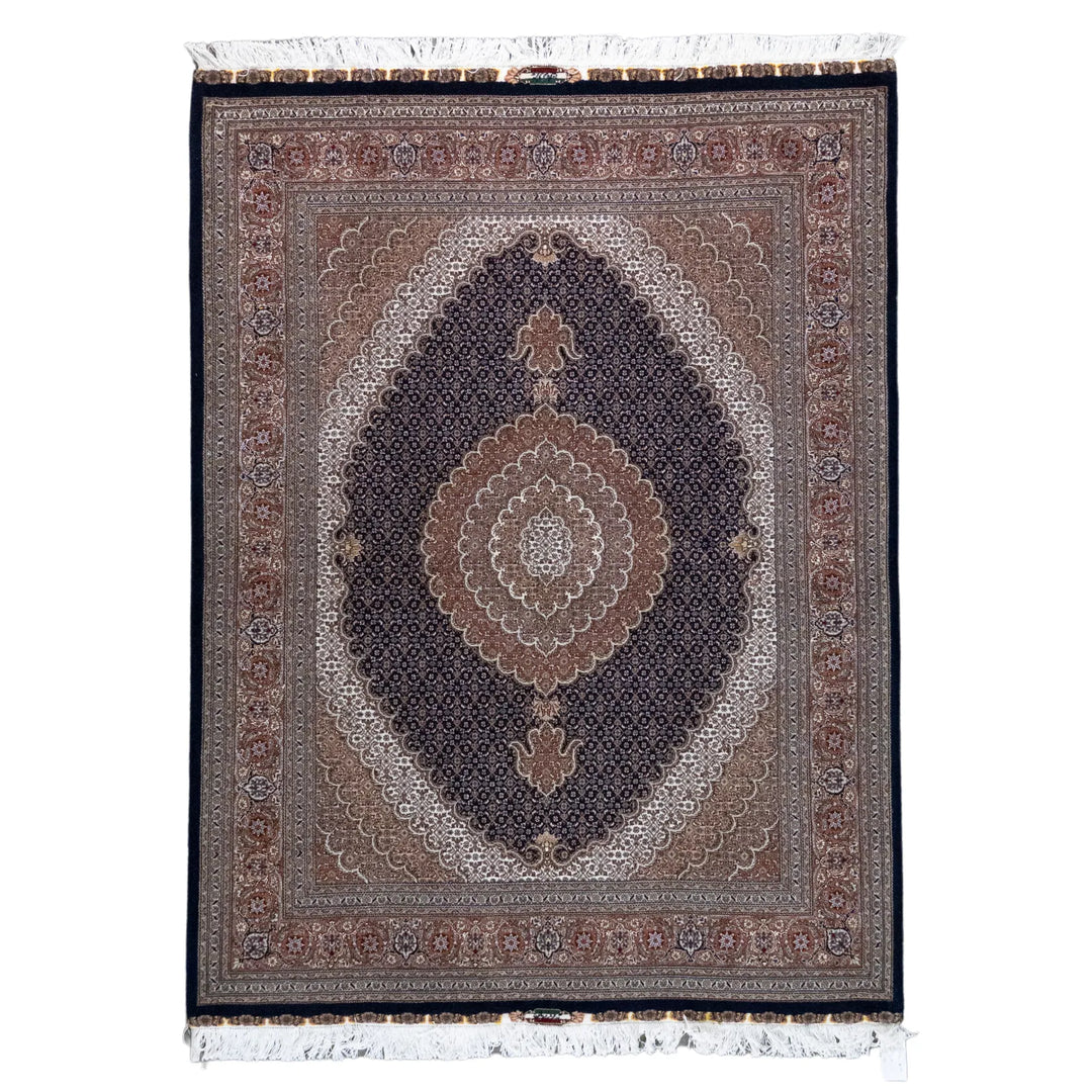 5' 1" x 6' 9" - NAVY AND BROWN TABRIZ FISH DESIGN PERSIAN RUG ( 155 x 206 CM )