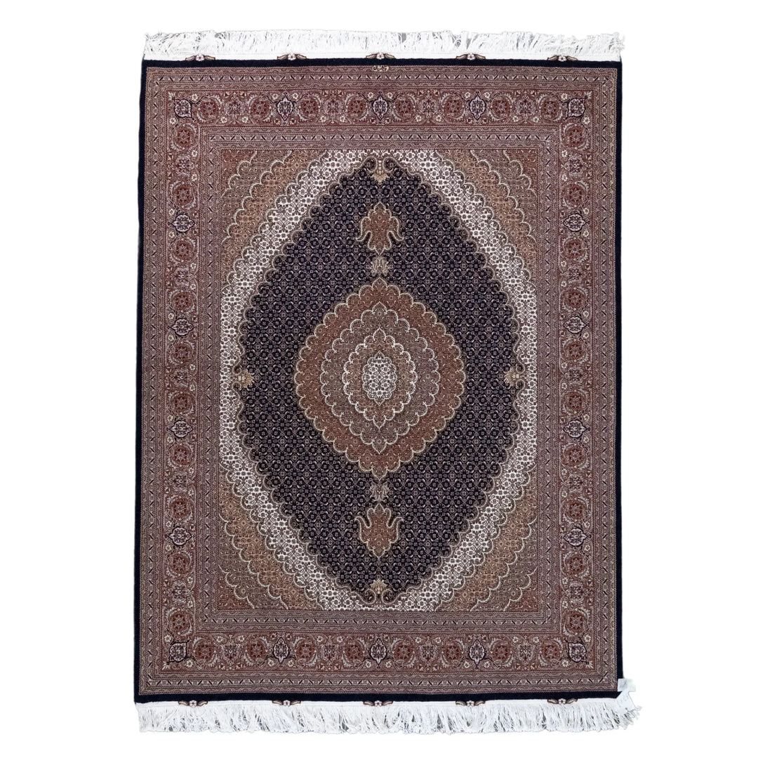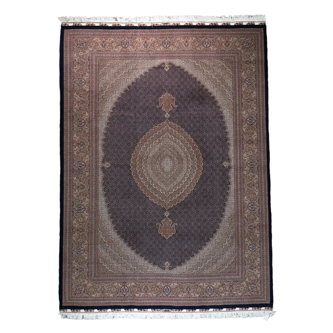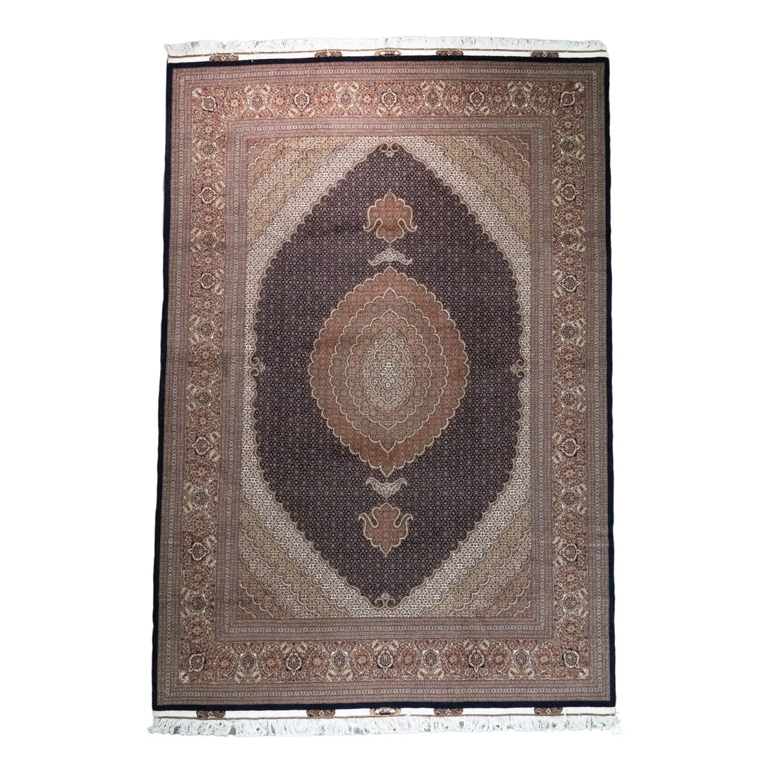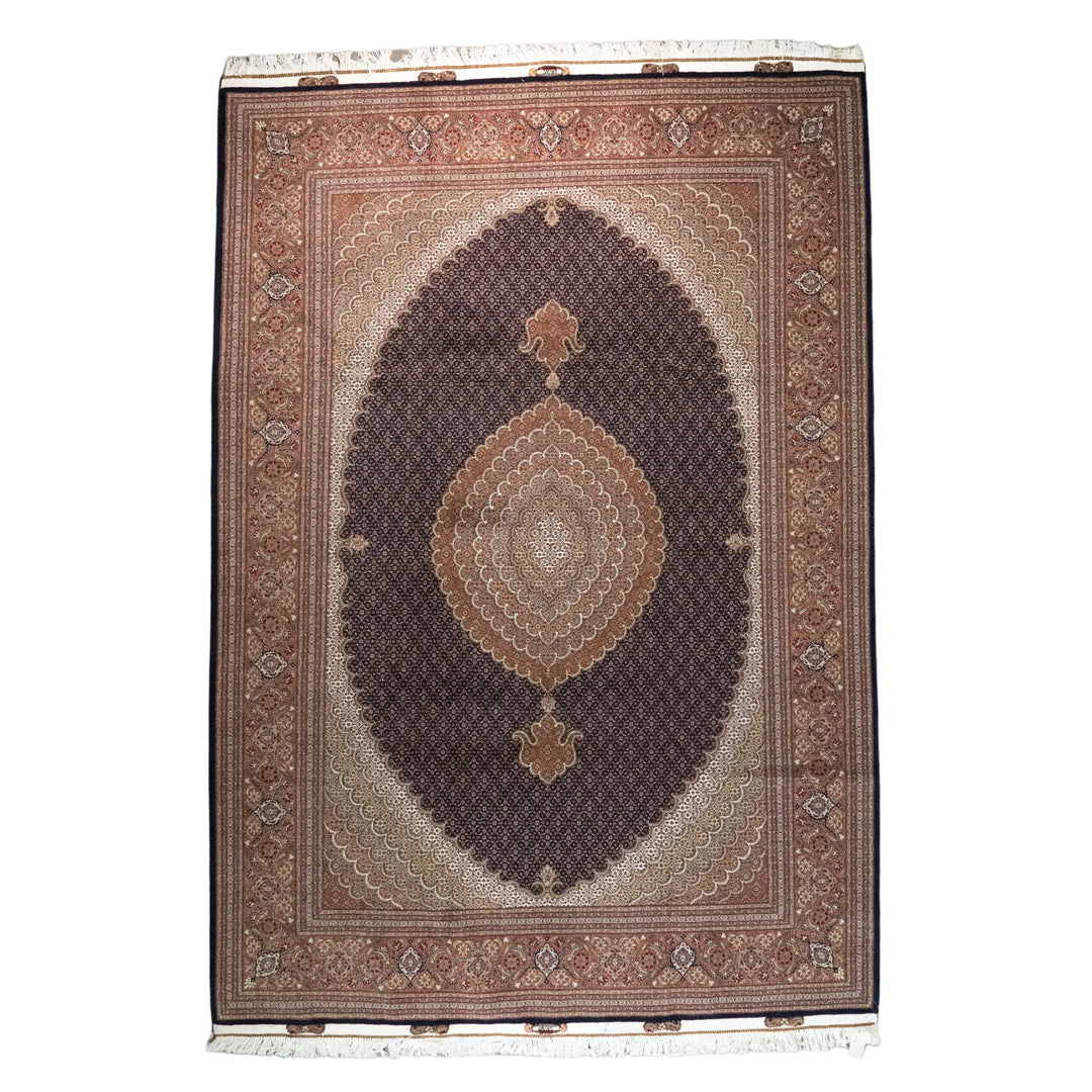 5' 1" x 6' 9" - NAVY AND BROWN TABRIZ FISH DESIGN PERSIAN RUG ( 155 x 206 CM )