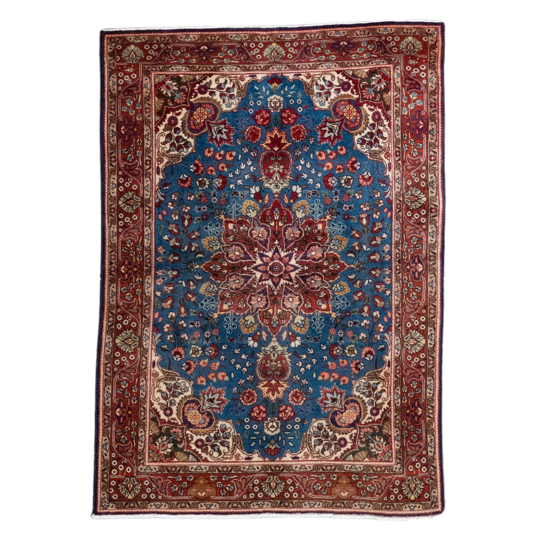 3' 3" x 5' 1" - BLUE AND BLUE TABRIZ FLORAL PERSIAN RUG ( 99 x 155 CM )