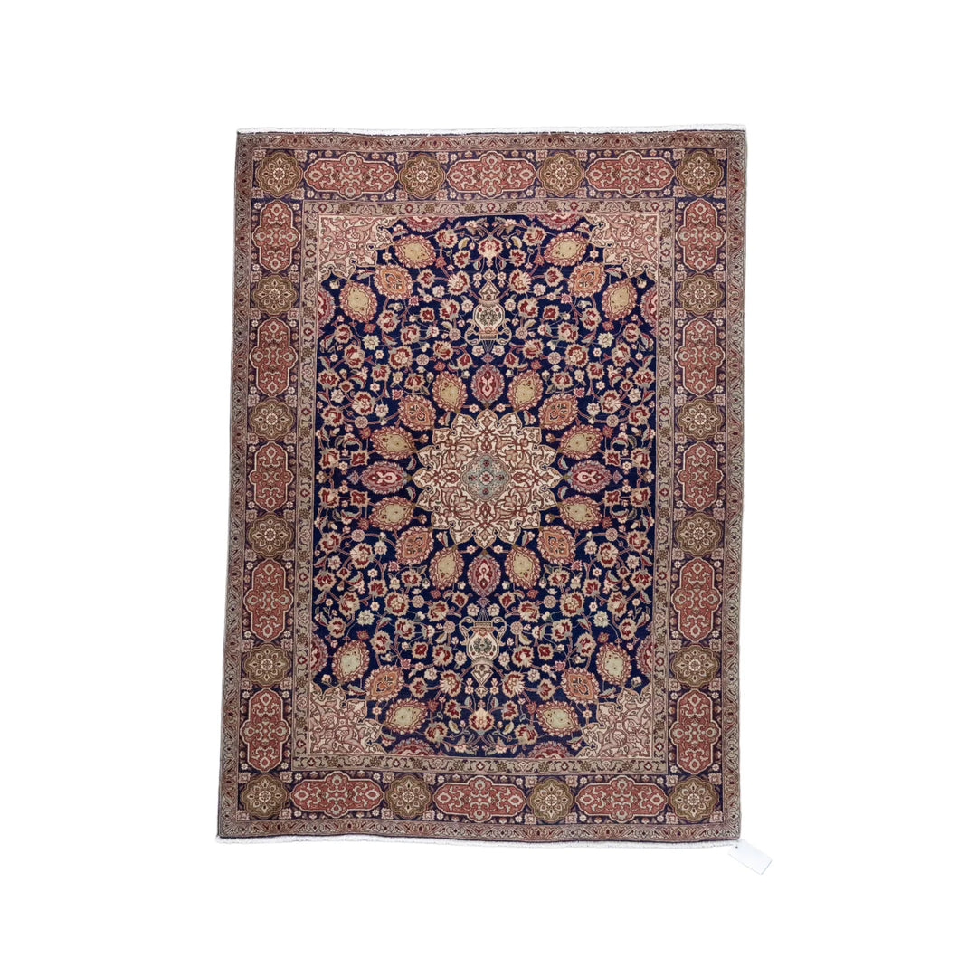 4' 8" x 6' 5" - NAVY AND BEIGE TABRIZ FLORAL PERSIAN RUG ( 142 x 195 CM )