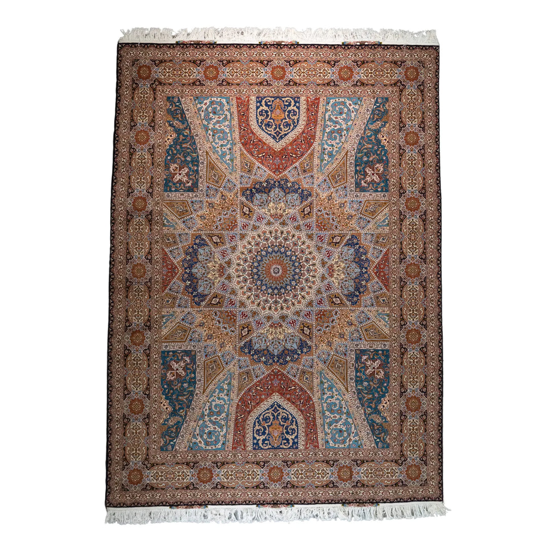 9' 9" x 13' 3" - BEIGE AND ROSE TABRIZ FLORAL PERSIAN RUG ( 297 x 404 CM )