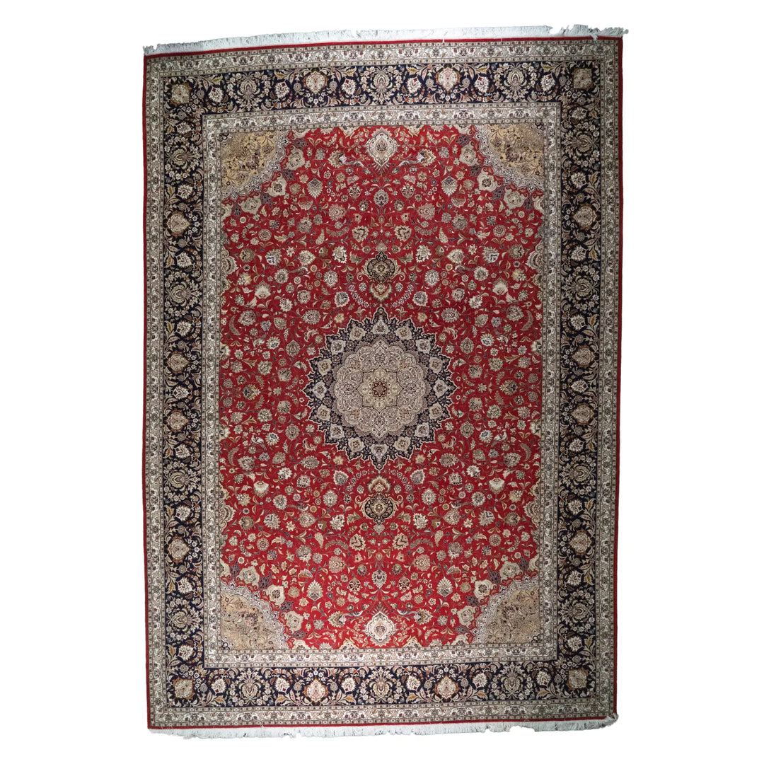 9' 10" x 13' 2" - NAVY AND ROSE TABRIZ FISH DESIGN PERSIAN RUG ( 300 x 401 CM )