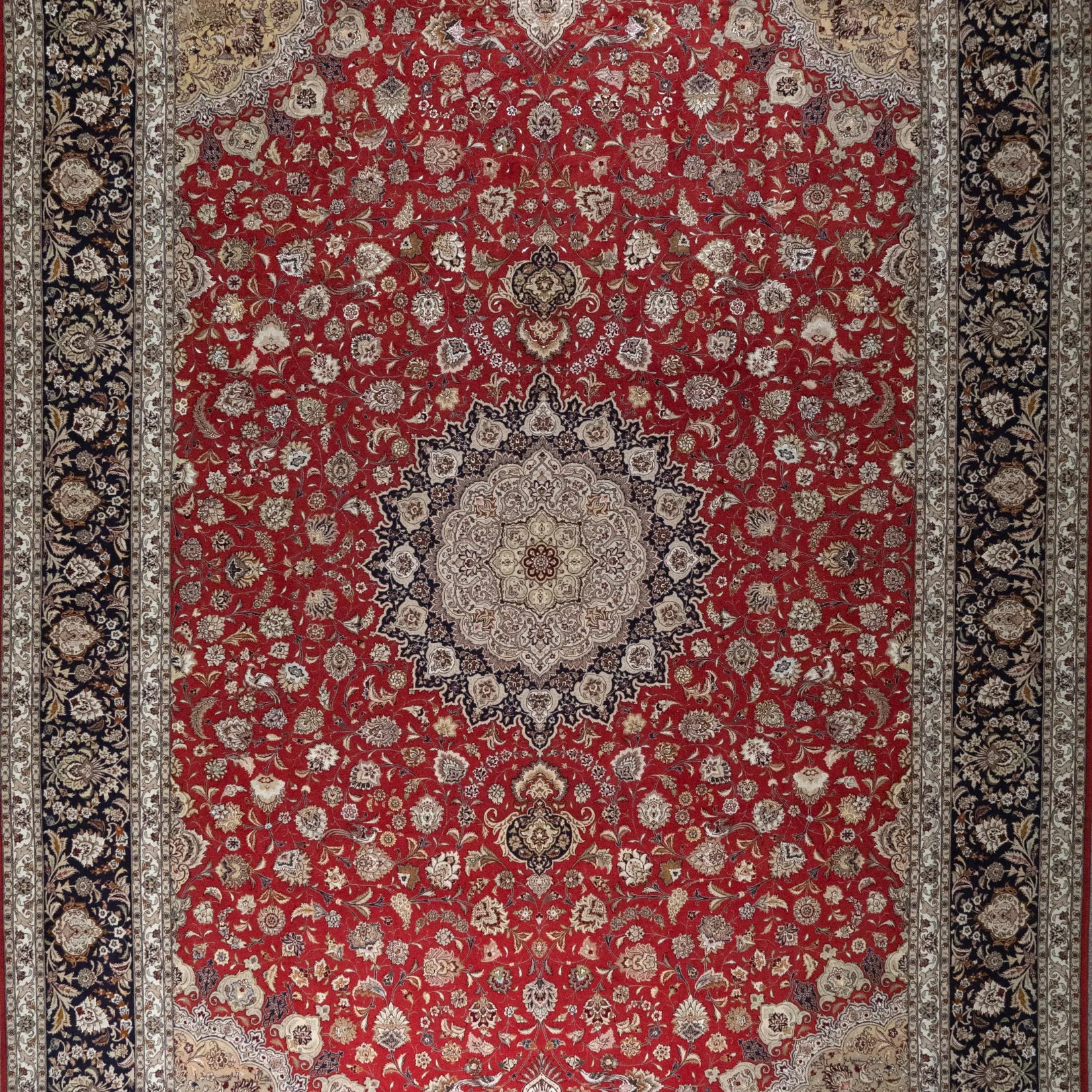 Enhance Your Space with Classic FLORAL Beauty. This beautiful TABRIZ rug, crafted in a classic FLORAL style, brings a warm, welcoming feel to your home. The rich RED background, combined with its elegant BLACK border, creates a bold yet timeless look. The soft colors and intricate design make this rug perfect for adding character and style to your living room, dining area, or any space that needs a fresh update. Sourced from PERSIAN, this handmade rug is not only a stunning decorative piece but also a valuable investment in quality craftsmanship. Measuring 11' 4" x 16' 3" (imperial) or 345 x 495 (metric), its durable construction ensures it will last for years, making it a timeless addition to your decor.