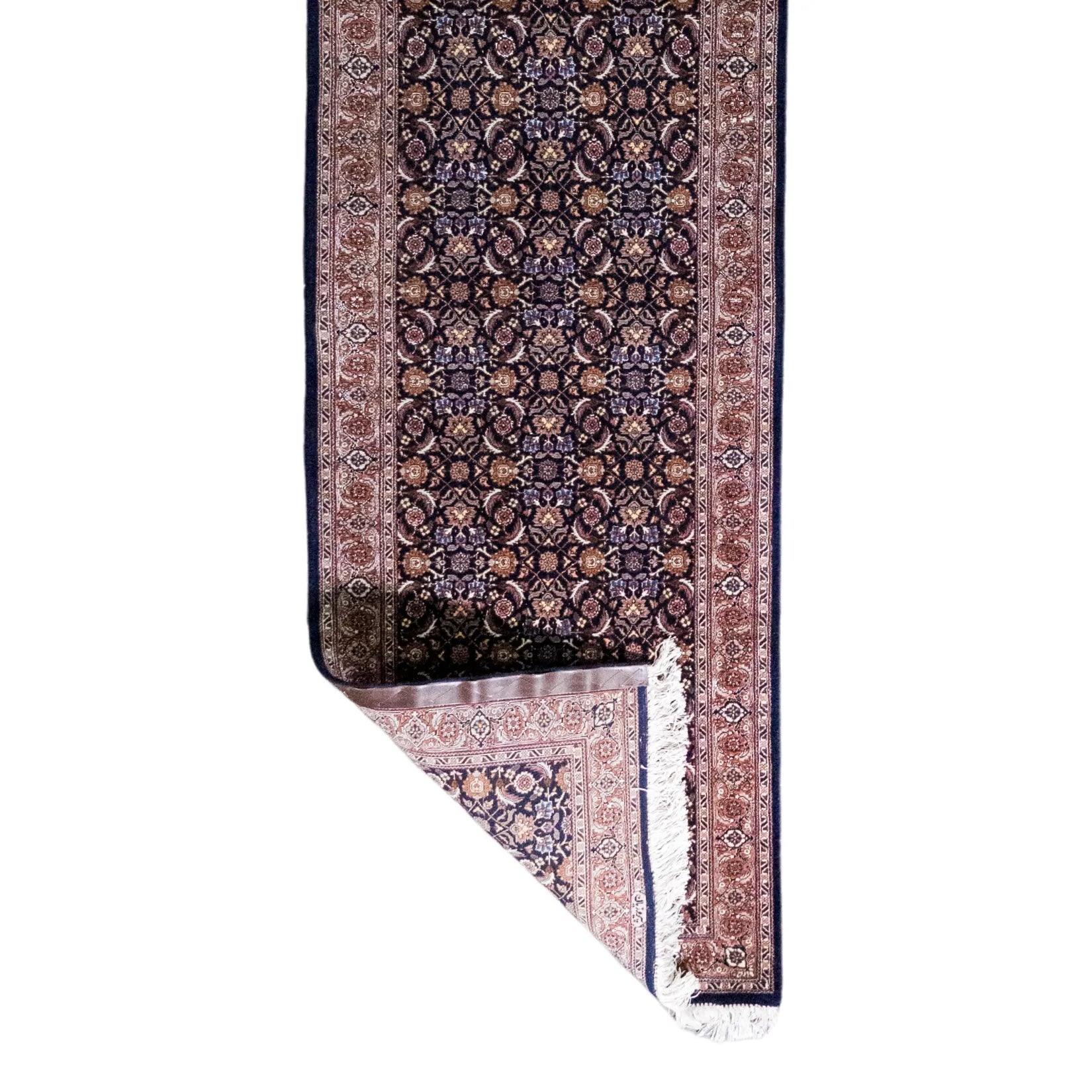Elevate Your Space with Timeless FISH DESIGN. This elegant TABRIZ rug, featuring the distinctive fish design, brings a touch of heritage and artistry to your home. The intricate patterns on the NAVY background symbolize movement and harmony, making it a perfect centerpiece for any room. The ROSE border adds a sophisticated contrast, framing the detailed design beautifully. Whether displayed in your living room, study, or any formal space, this rug enhances the ambiance with its rich cultural significance. Handcrafted in PERSIAN, this rug is not only a stylish addition but also a lasting investment in quality and tradition. Measuring 2' 9" x 11' 3" (imperial) or 84 x 343 (metric), it offers durability and elegance that will elevate your space for years to come.