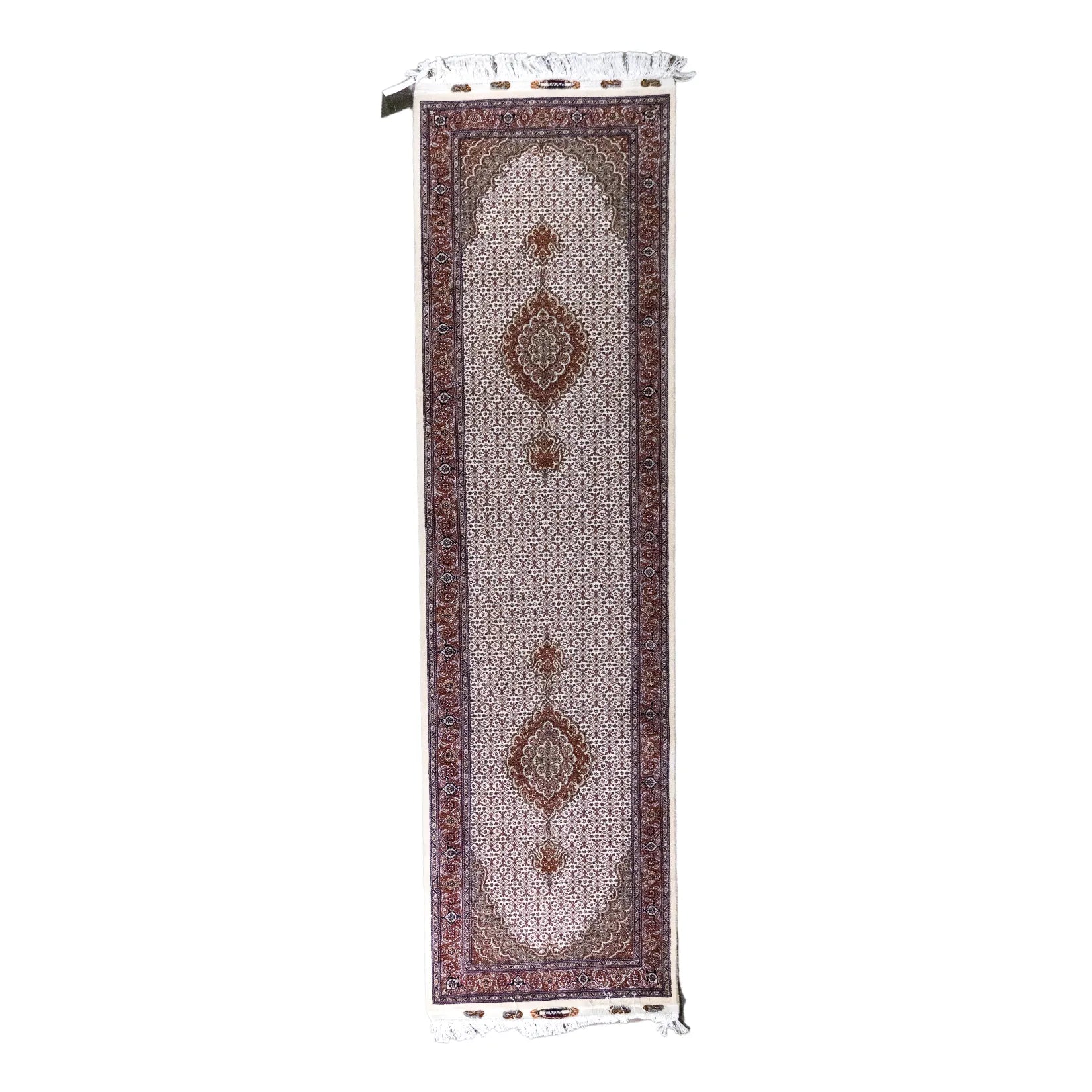 Elevate Your Space with Timeless FISH DESIGN. This elegant TABRIZ rug, featuring the distinctive fish design, brings a touch of heritage and artistry to your home. The intricate patterns on the ROSE background symbolize movement and harmony, making it a perfect centerpiece for any room. The RED border adds a sophisticated contrast, framing the detailed design beautifully. Whether displayed in your living room, study, or any formal space, this rug enhances the ambiance with its rich cultural significance. Handcrafted in PERSIAN, this rug is not only a stylish addition but also a lasting investment in quality and tradition. Measuring 2' 9" x 9' 11" (imperial) or 84 x 302 (metric), it offers durability and elegance that will elevate your space for years to come.