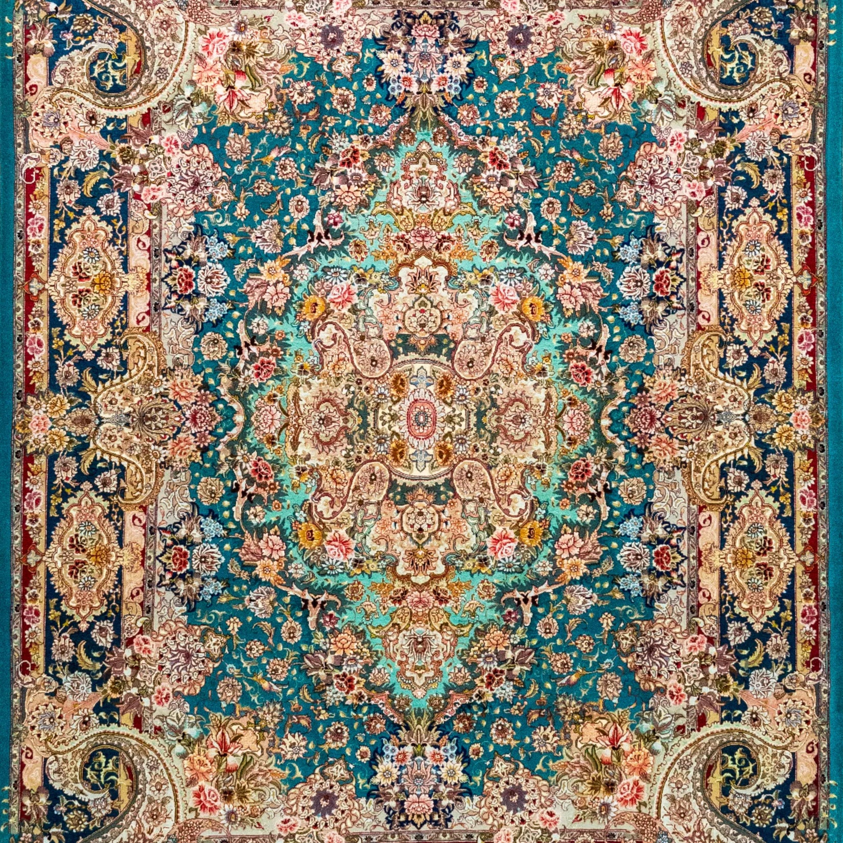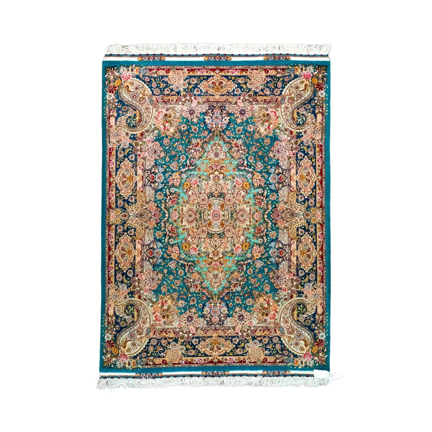 Enhance Your Space with Classic FLORAL Beauty. This beautiful TABRIZ rug, crafted in a classic FLORAL style, brings a warm, welcoming feel to your home. The rich GREEN background, combined with its elegant MULTICOLOR border, creates a bold yet timeless look. The soft colors and intricate design make this rug perfect for adding character and style to your living room, dining area, or any space that needs a fresh update. Sourced from PERSIAN, this handmade rug is not only a stunning decorative piece but also a valuable investment in quality craftsmanship. Measuring 4' 11" x 6' 9" (imperial) or 150 x 206 (metric), its durable construction ensures it will last for years, making it a timeless addition to your decor.