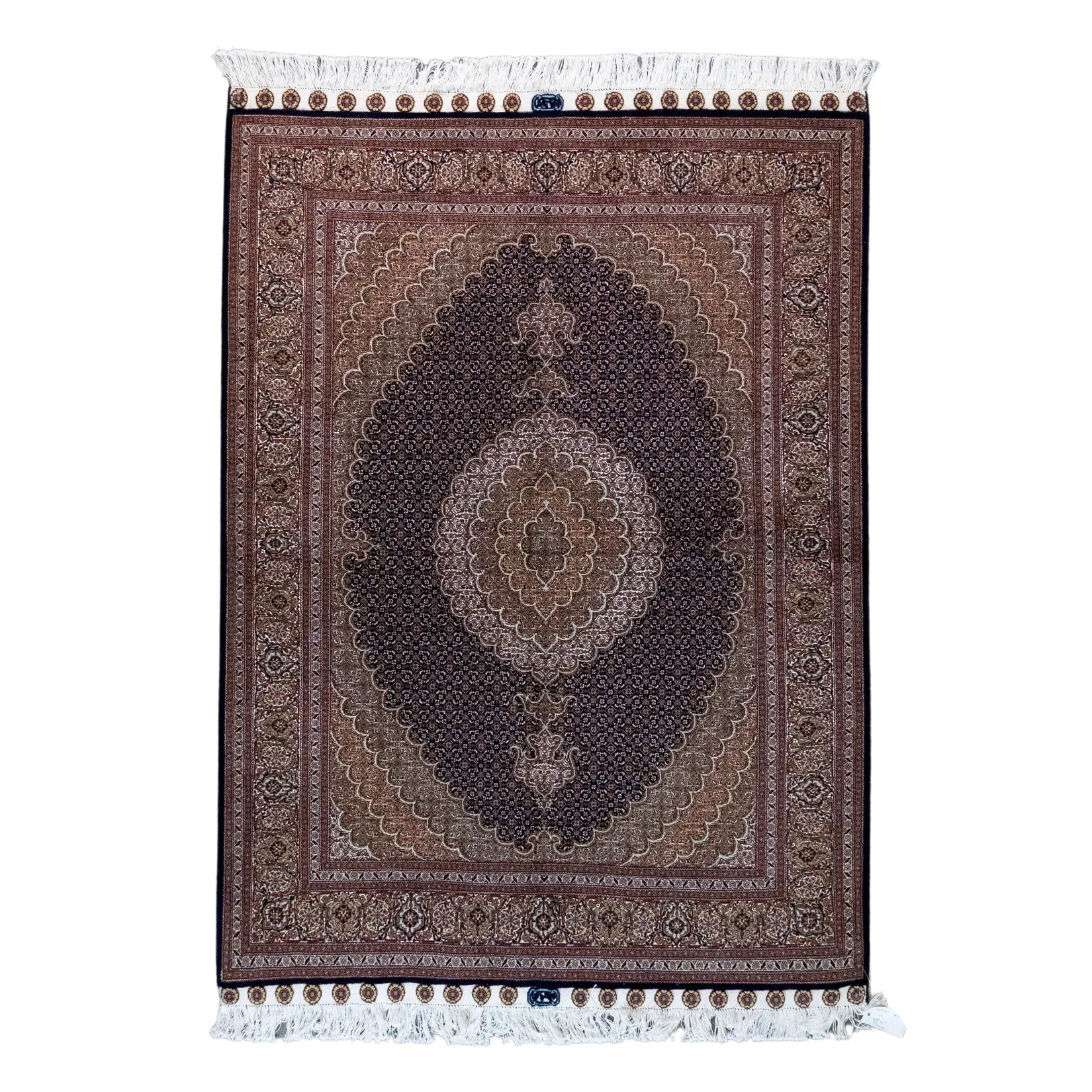 Elevate Your Space with Timeless FISH DESIGN. This elegant TABRIZ rug, featuring the distinctive fish design, brings a touch of heritage and artistry to your home. The intricate patterns on the NAVY background symbolize movement and harmony, making it a perfect centerpiece for any room. The GREEN border adds a sophisticated contrast, framing the detailed design beautifully. Whether displayed in your living room, study, or any formal space, this rug enhances the ambiance with its rich cultural significance. Handcrafted in PERSIAN, this rug is not only a stylish addition but also a lasting investment in quality and tradition. Measuring 5' 1" x 6' 11" (imperial) or 155 x 211 (metric), it offers durability and elegance that will elevate your space for years to come.